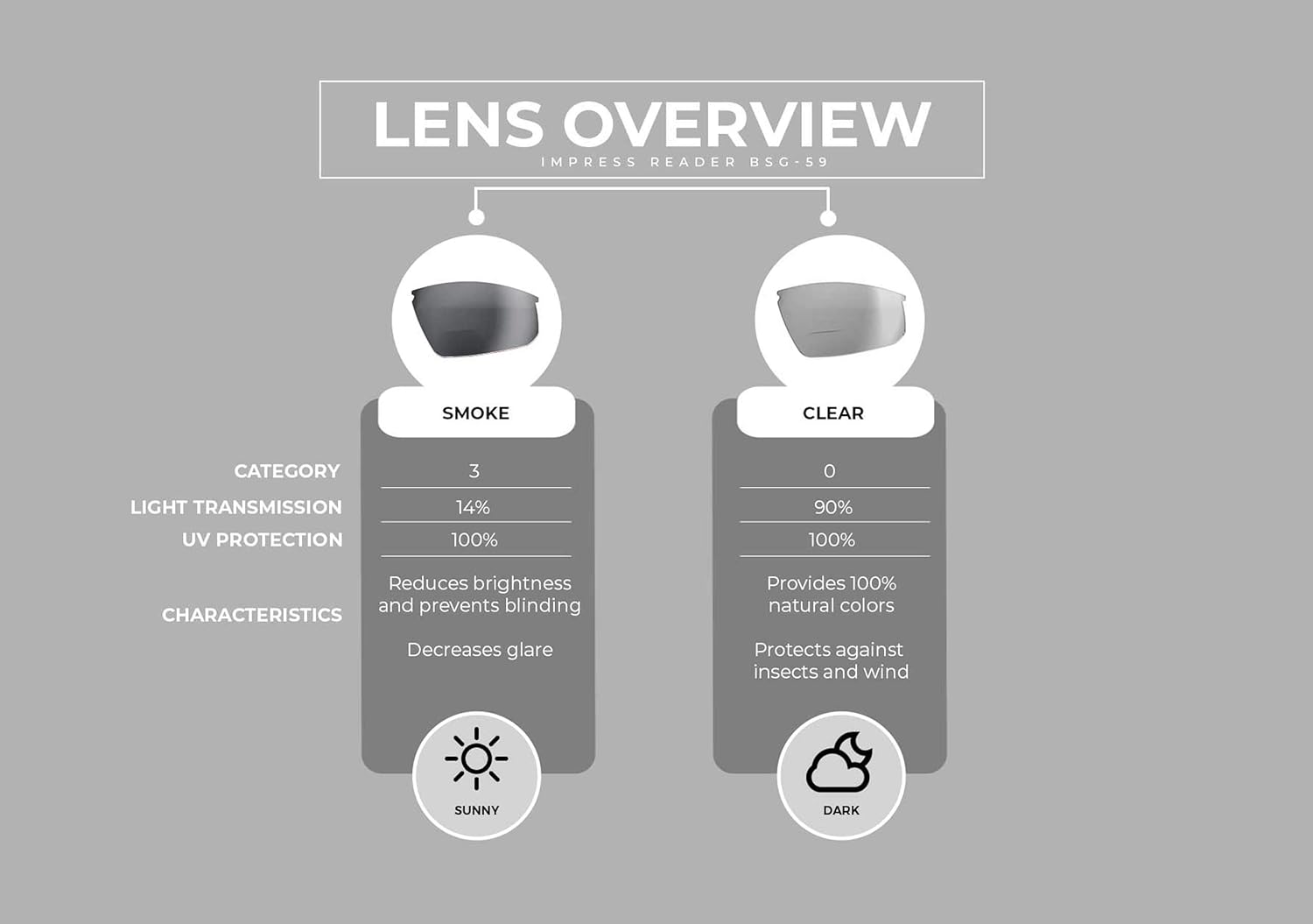 - 3 WECHSELGLÄSER INBEGRIFFEN: 1 graues (MLC) Glas und 1 klares Glas. Alle Gläser sind unzerbrechlich und passen sich allen Lichtverhältnissen an