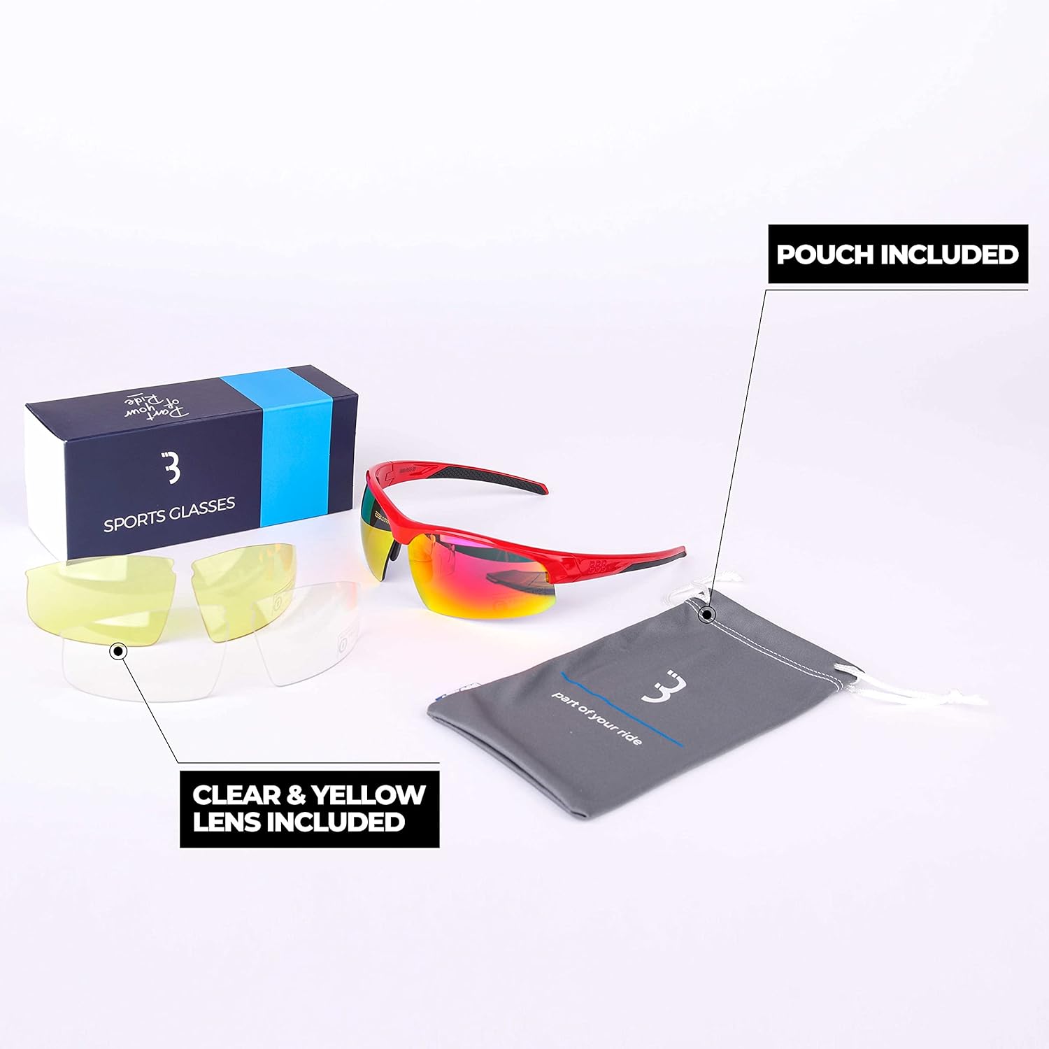 • Lieferumfang: 1 x BBB Cycling Impress BSG-58 Fahrradbrille in Gläzend Rot / Klassische Sportbrille für Damen und Herren / Mit drei austauschbaren Gläsern / 100 % UV-Schutz