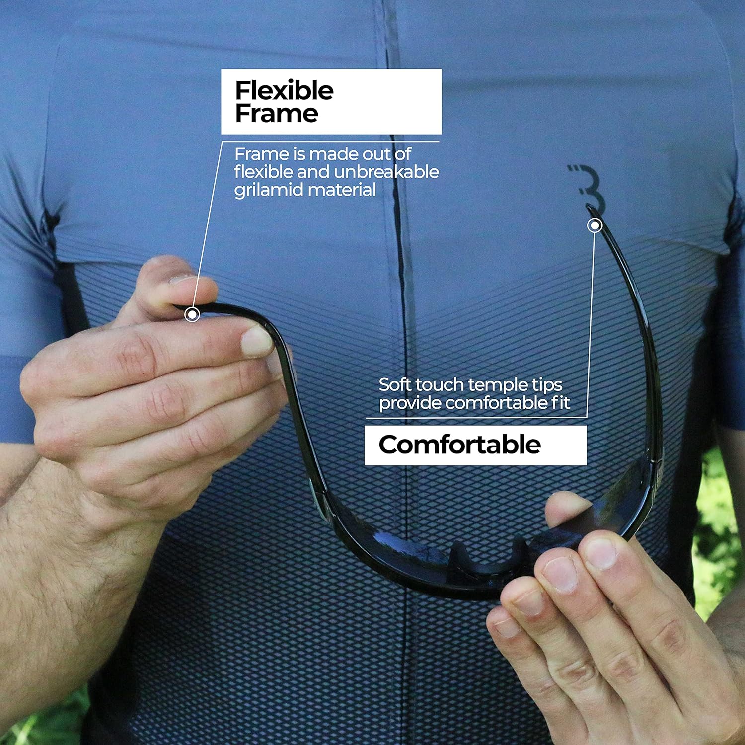 - SICHER: Dank der speziellen Sperre können die eingeklappten Bügelenden die Gläser von diesen Fahrradbrille nicht beschädigen
