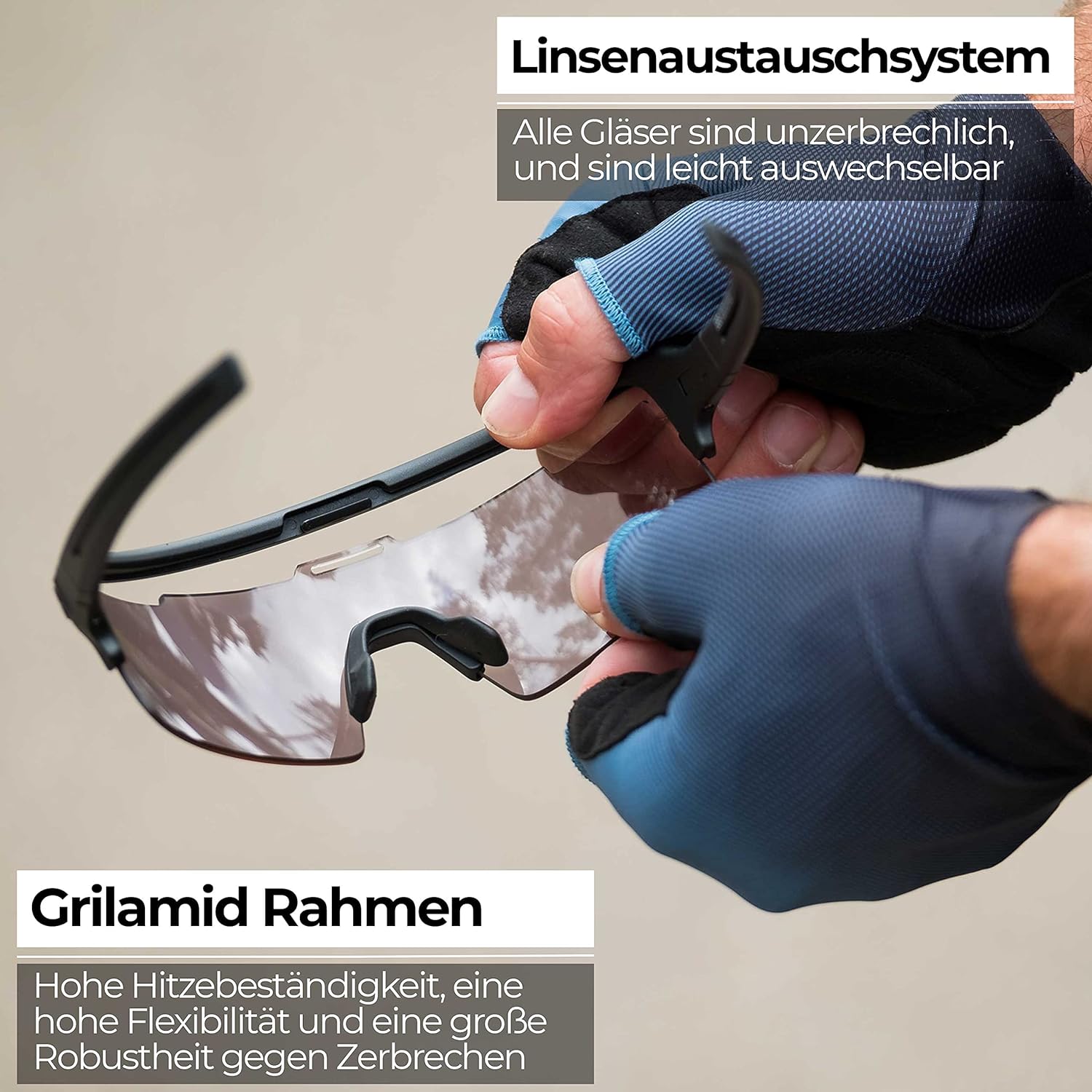 - 100 % UV-SCHUTZ: Diese Wechsel-Sonnenbrille für Radfahrer hat reflektierende Gläser, die 100 % UV-Schutz bieten