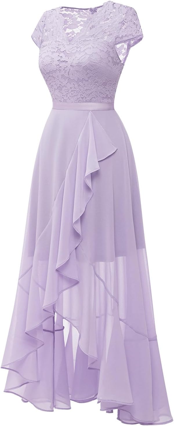 - Design:Maxi Abendkleid,V-Ausschnitt Ballkleider,Vokuhila Abschlusskleid,Spitze+Chiffon Kleid,Reissverschluss im Rücken. Elegant und charmant und immer in Mode.