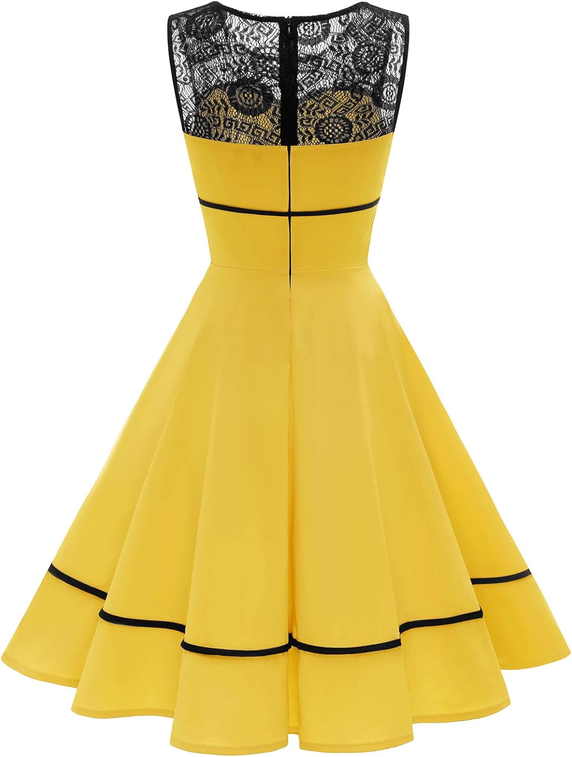 - Design: 50er Retro Vintage Stil, Ärmellos, Knielang, A-Linie, Rundhals mit Spitze, Reissverschluss im Rücken, Spleissdesign, einzigartige Knöpfe.