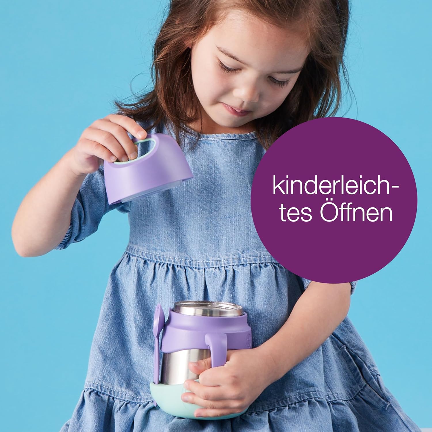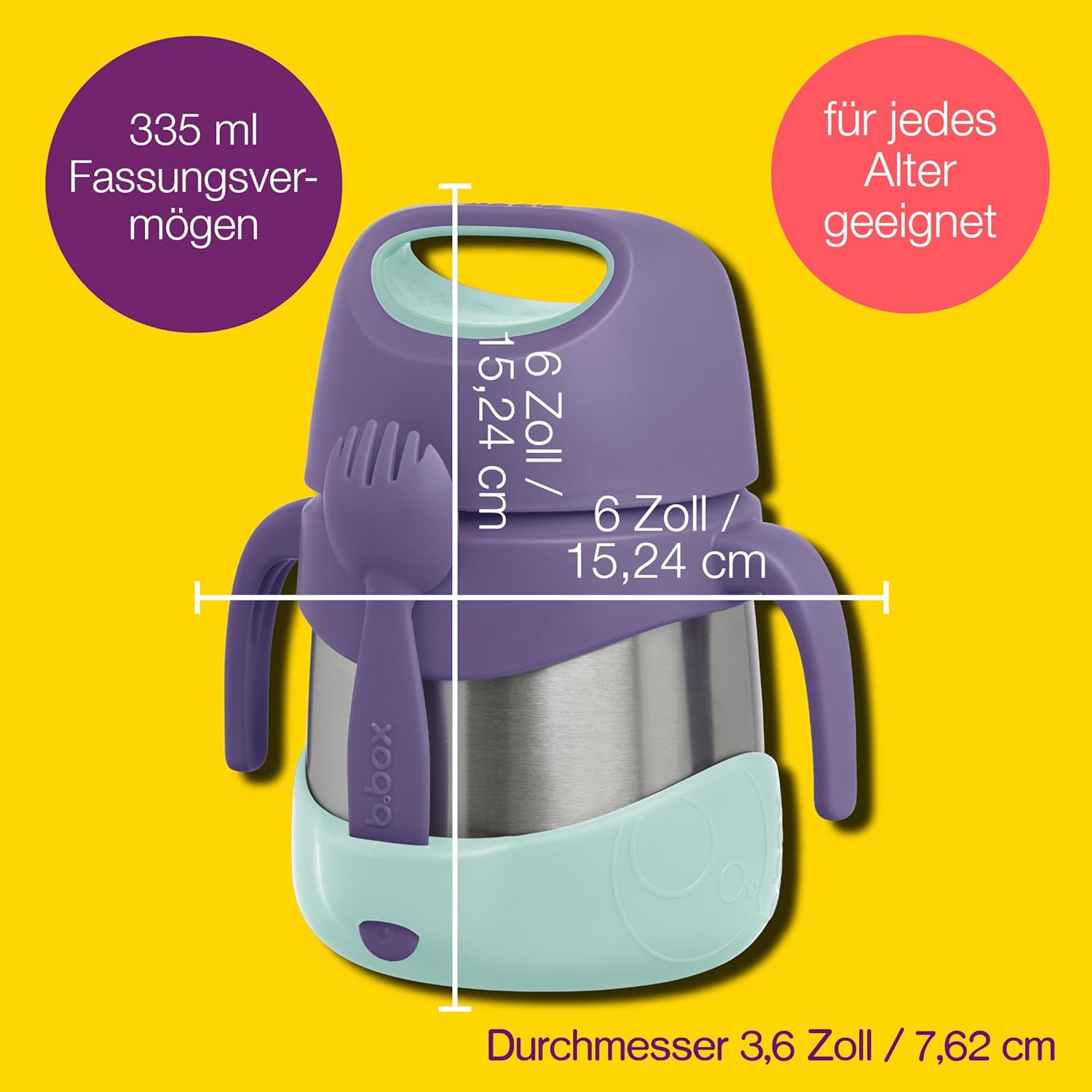 - Die Thermoskanne wird mit einer sicheren Gabel geliefert, die am Deckel befestigt ist (ein kompaktes Set, das Sie überall hin mitnehmen können, wo Sie es brauchen);