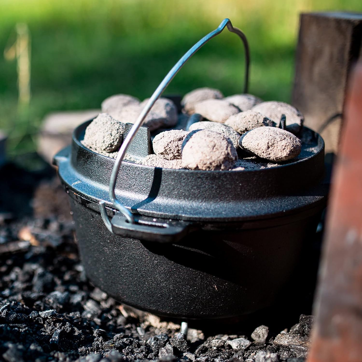 - DAS PRINZIP I Der Dutch Oven reguliert dank seiner hohen Masse (Gusseisen) ungleichmässige Hitze und ermöglicht so ein gleichmässiges Garen. Einfach glühende Kohlen, Glut oder Grillbriketts auf den Deckel und unter den Topf geben und das Dutch