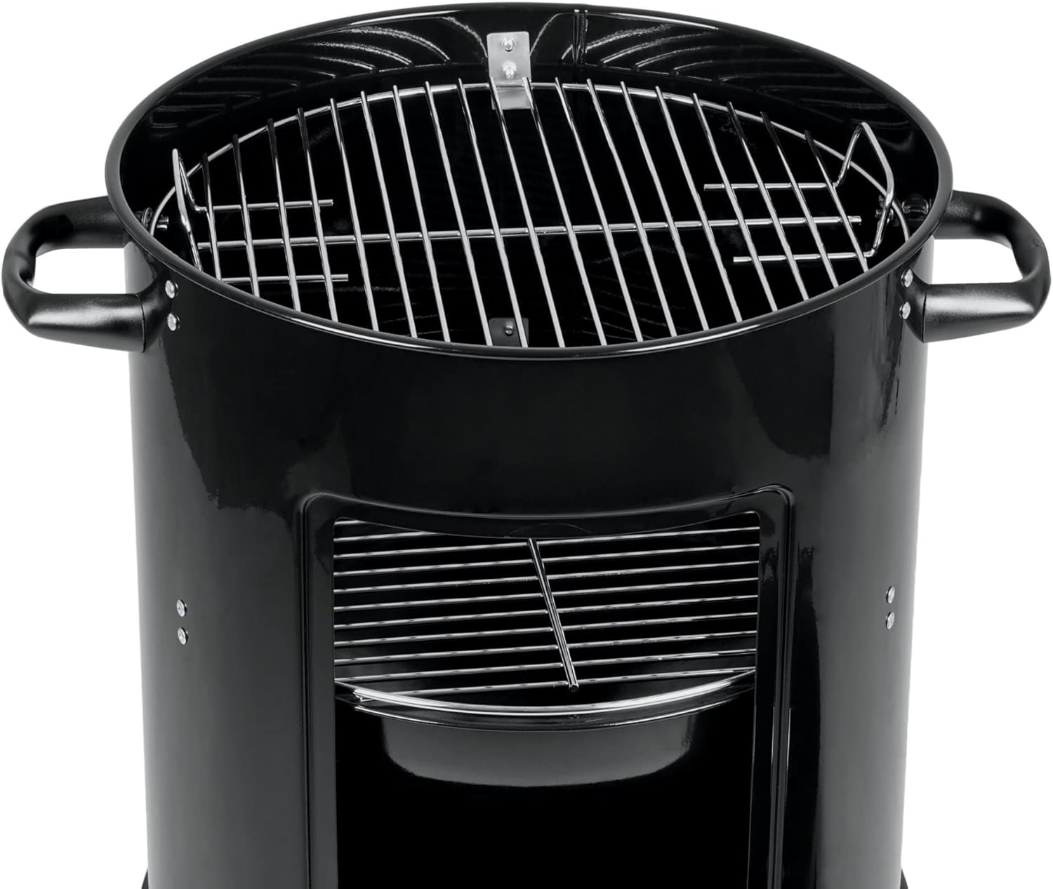 - EXTRAS | Dank der integrierten Wasserwanne kann ein besserer Temperaturausgleich stattfinden und die Speisen werden saftiger. Die grosse Tür an der Vorderseite eignet sich ideal zum Nachlegen von Grillkohle, Briketts oder Räucherchips.