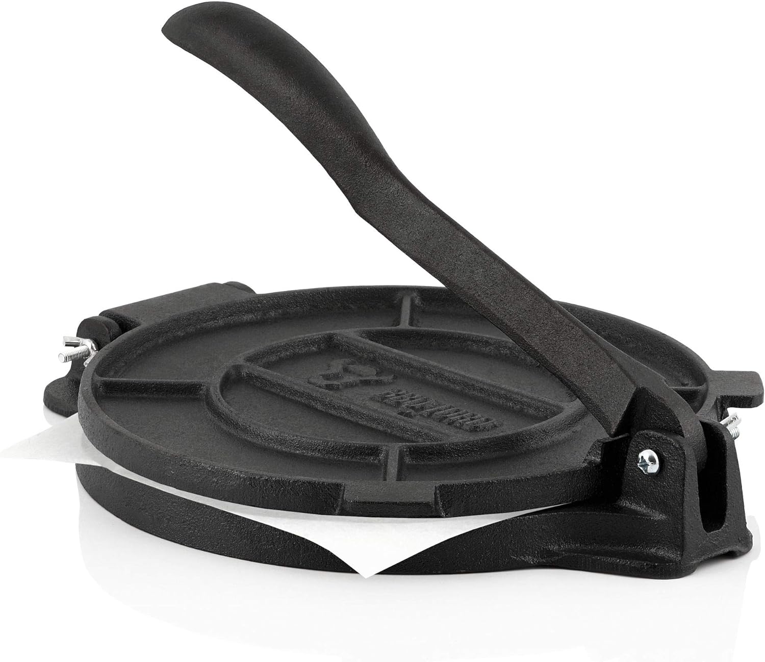 - QUALITÄT | Die, aus schwerem Gusseisen gefertigte, Tortillapresse ist bereits eingebrannt (preseasoned) und kann sofort genutzt werden.