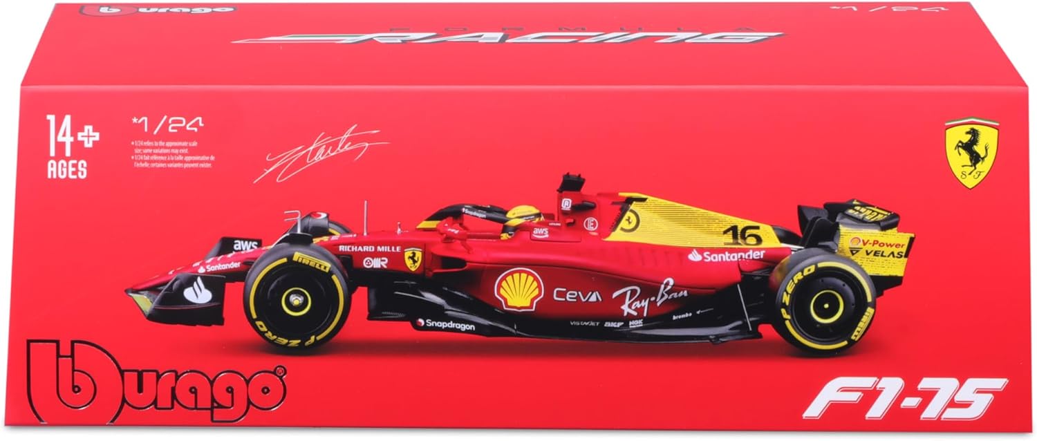 - Detailgetreues Metallspritzgussmodell: Erleben Sie den 2022er Ferrari F1-75 von Charles Leclerc im Massstab 1:24 mit beeindruckender Präzision.