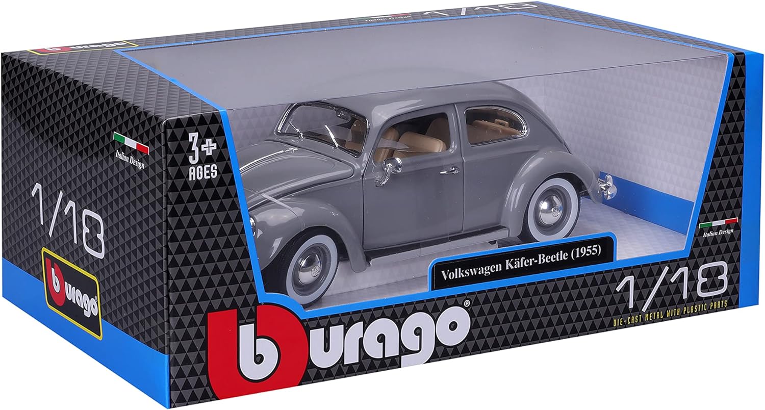 Bburago Volkswagen Käfer (1955): Modellauto im Massstab 1:18, Türen, Kofferraum und Motorhaube beweg