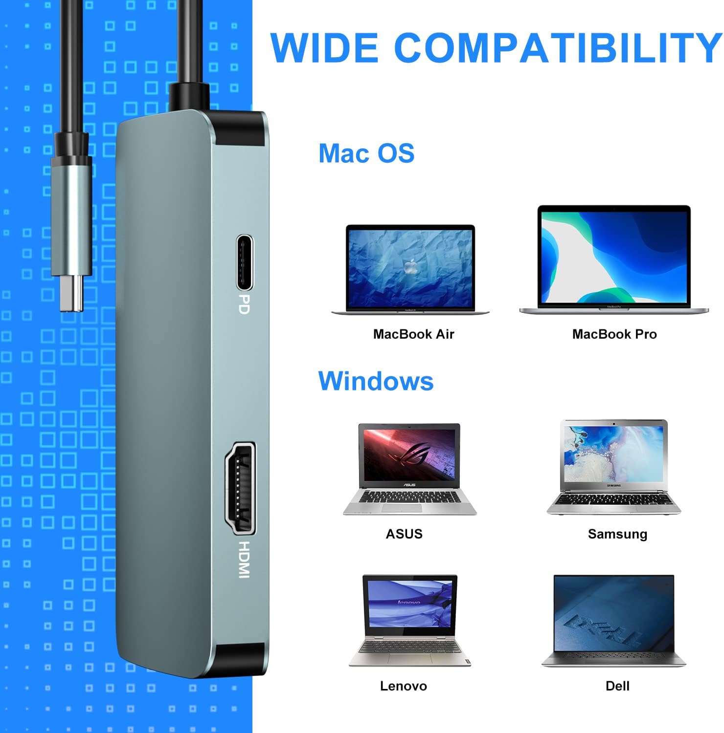 - 【BREITE KOMPATIBILITÄT】: Der Dockingstation-Adapter ist mit Laptops, Tablets, Mobiltelefonen und anderen intelligenten Geräten mit USB-C-Anschlüssen kompatibel. Kompatibel mit den meisten USB-C-Geräten wie MacBook Pro&Air, iPad/Pro, Chromebook,
