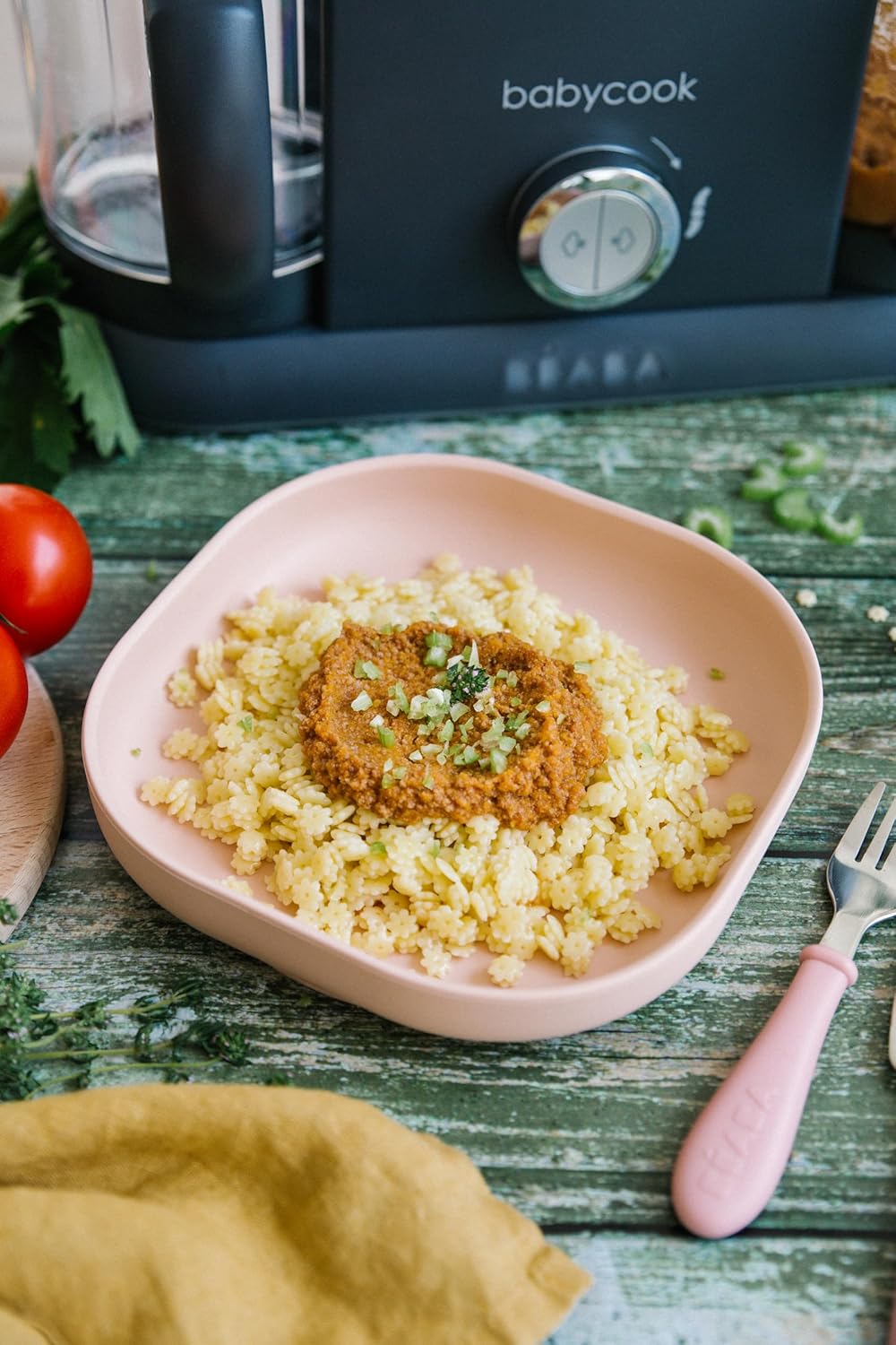- Mehrere Texte: Impulsmixer mit Zyklon-Effekt. Die Lebensmittel werden auf Mass gemischt, für eine Textur, die dem Alter des Kindes angepasst ist (Stücke, gemahlen oder samtig)
