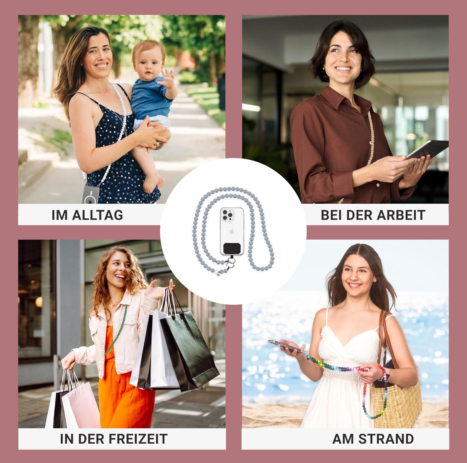 - ❤️ Einfache Bedienung: Der Perlen Handyanhänger lässt sich in Sekunden an dem Smartphone befestigen. Perfekt für den Alltag, Festivals, Reisen oder Partys, um deine Hände frei zu haben.