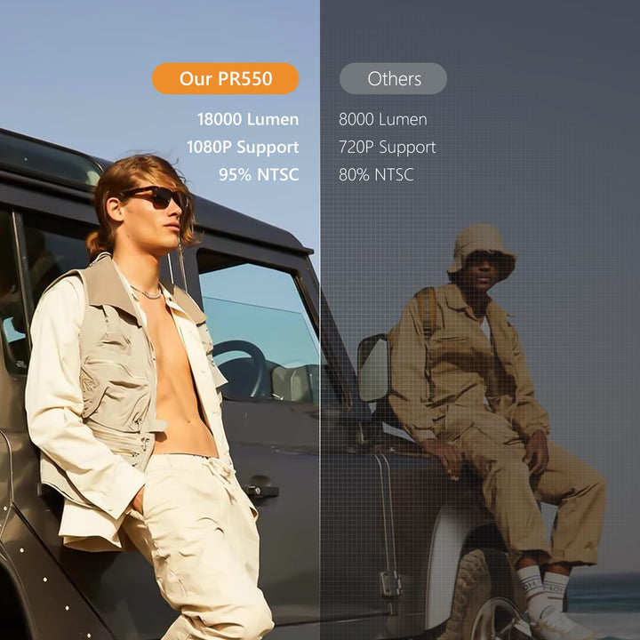 - đă4K Native 1080P & Auto Vertikale Keystone KorrekturăDer PR550 portable beamer unterstĂŒtzt eine Auflösung von 4K Native 1080P und verfĂŒgt ĂŒber eine Helligkeit von 18000 Lumen. Diese hervorragende Helligkeitseigenschaft bedeutet, dass er