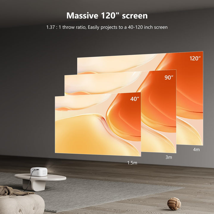 - đăGrossbild & Verbindung Mehrerer GerĂ€teăDer PR550 Outdoor projector ermöglicht die Anpassung der Bildgrösse von 75% bis 100% ohne das Produkt zu bewegen. Er bietet auch eine grosse Bildschirmerfahrung von 60''-120'', die es Ihnen ermöglicht,