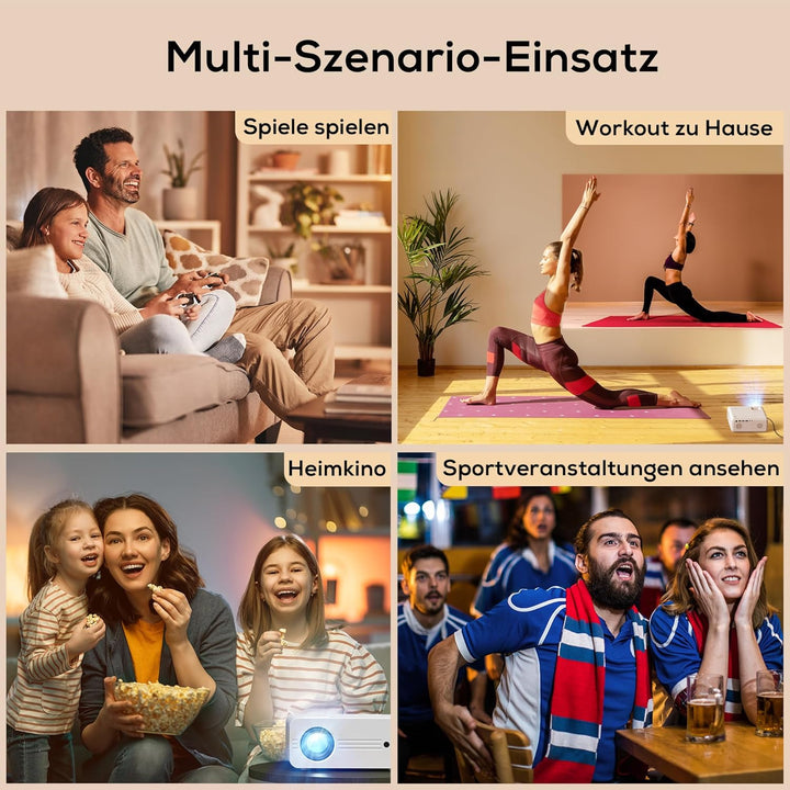 - 【Bluetooth 5.0 Verbindung & Hi-Fi Stereo】 Mini WiFi Projektor mit eingebautem Bluetooth 5.0 System, kann drahtlos mit Bluetooth Lautsprechern/Bluetooth Kopfhörern verbunden werden (Bluetooth kann keine Videos/Bilder übertragen). Eingebaute 5W Dual-Stereo-Lautsprecher mit SRS-Soundsystem für exzellenten Hi-Fi-Stereoklang. Geniessen Sie einen fesselnden Filmabend.(Der ursprüngliche Projektor wurde nach 2022.6.8 aufgerüstet)(Der ursprüngliche Projektor wurde nach 2022.6.8 aufgerüstet)