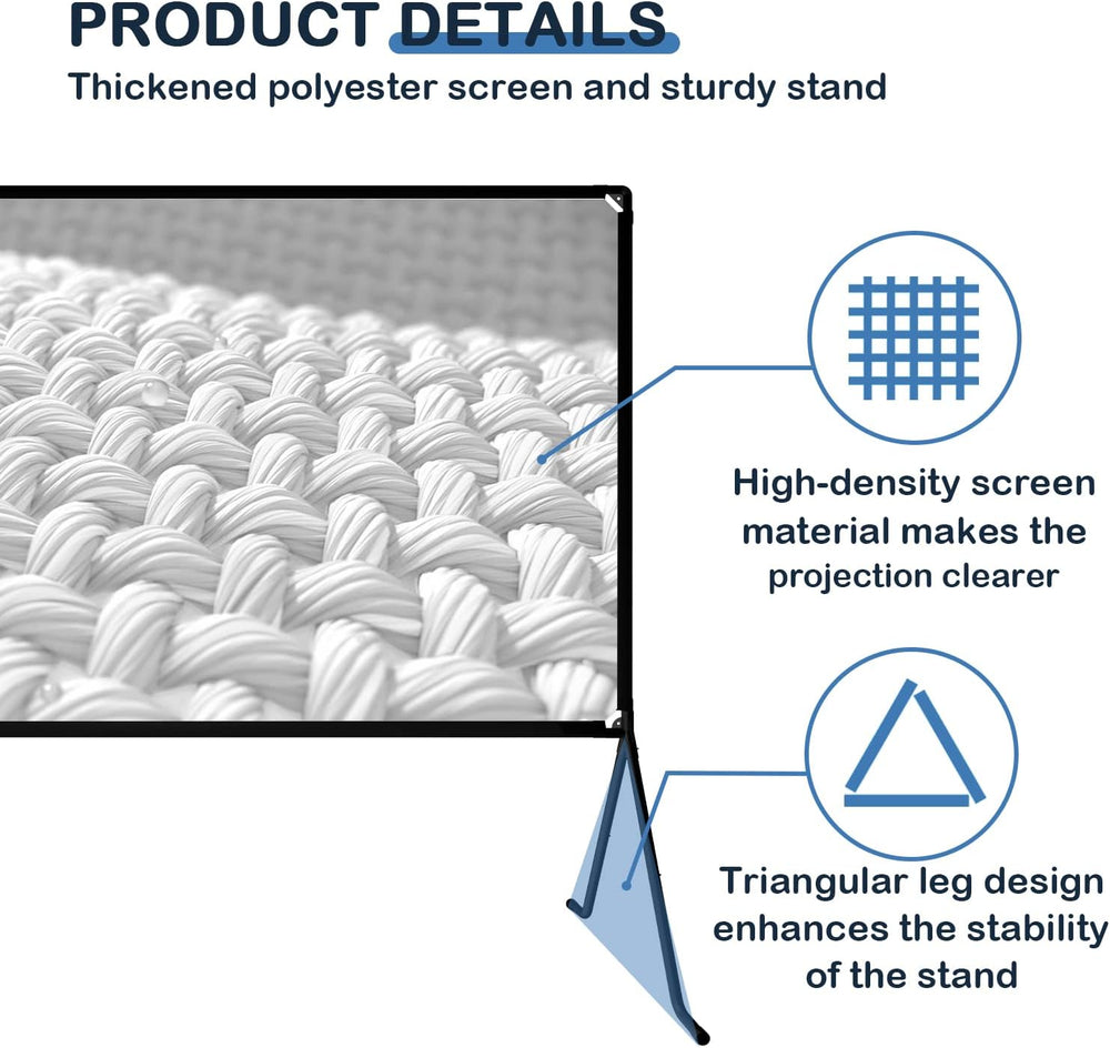 - Faltenfreies Material: Das einzigartige Design: 120-Zoll-Projektionswand mit Ständer kann für Filme im Freien in wenigen Minuten einfach eingerichtet werden. Die projektor leinwand kann auch für den Heimkino-Innenbereich an der Wand montiert werden. Verfügt über einen vollständig gespannten Druckknopfrahmen, der eine flache Projektion gewährleistet.