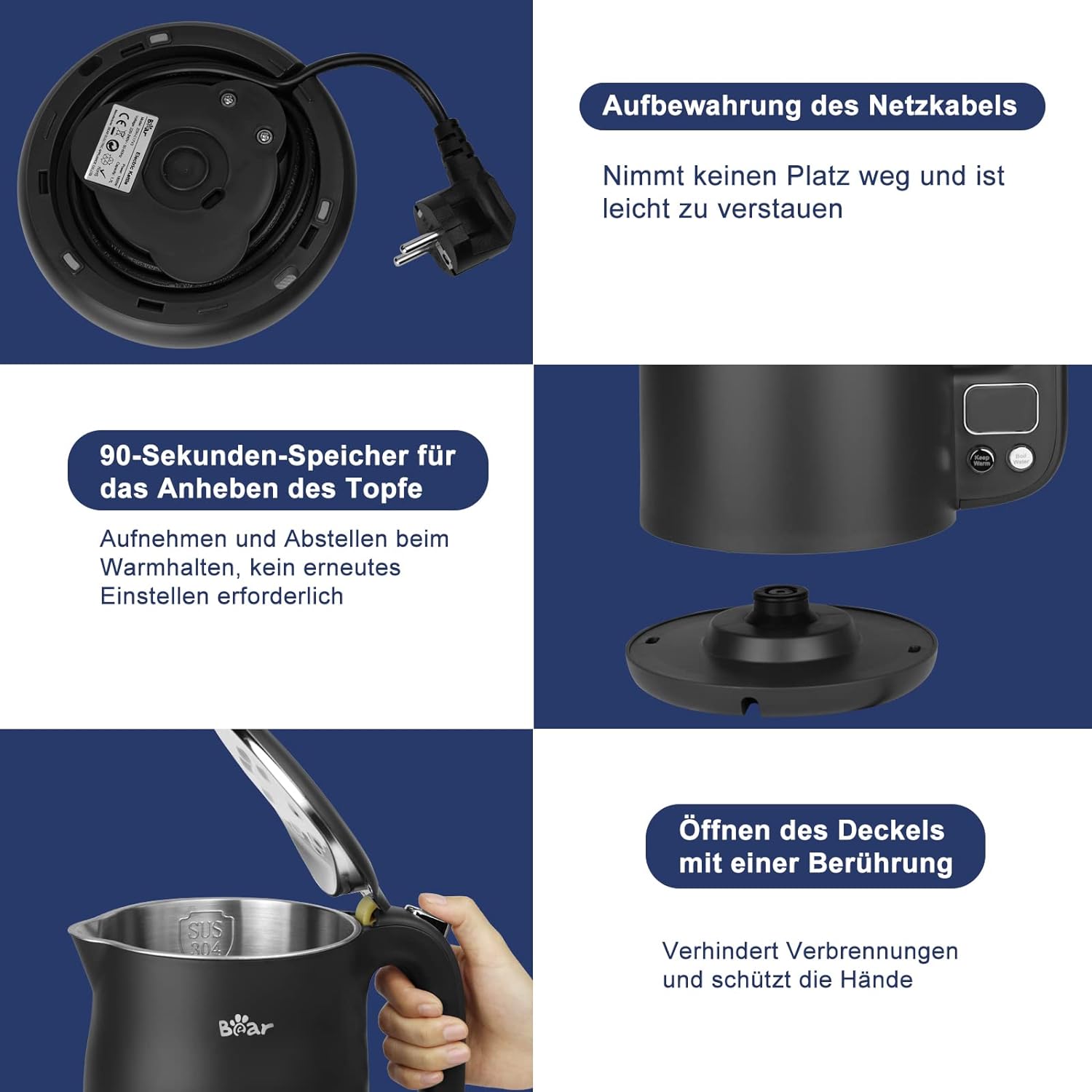 - ✨【11 Temperaturen + Kochfunktion】 Hochauflösende Digitalanzeige mit 11 Warmhalteoptionen von 40°C bis 90°C. Mit einem Tastendruck aktivieren Sie die Kochfunktion bei 100°C.