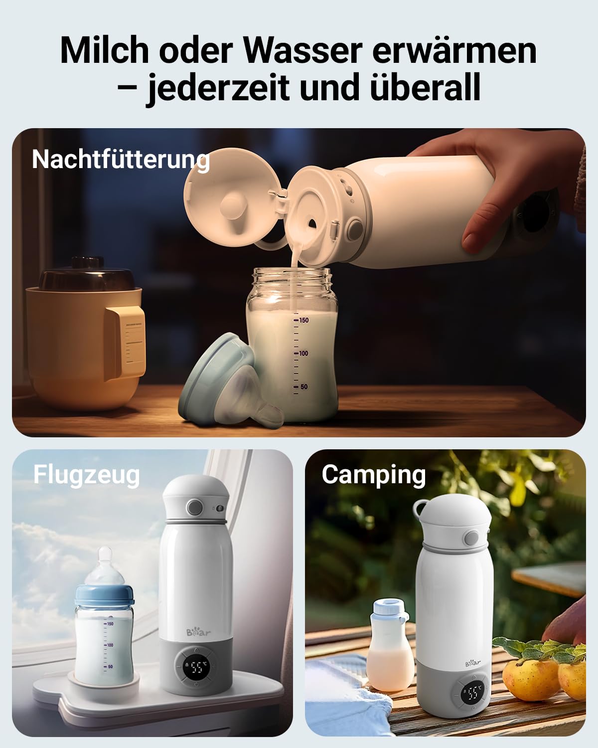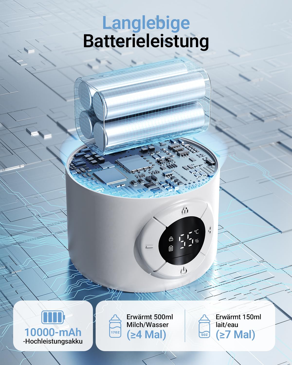 - 【Flaschen immer bereit, wo immer Sie sind】Bereiten Sie 5-8 Flaschen in nur 2,5 Stunden mit einem DC-Ladegerät (15 W oder mehr) zu. Perfekt für entspannte Nachtfütterungen - ganz ohne Küchengang.