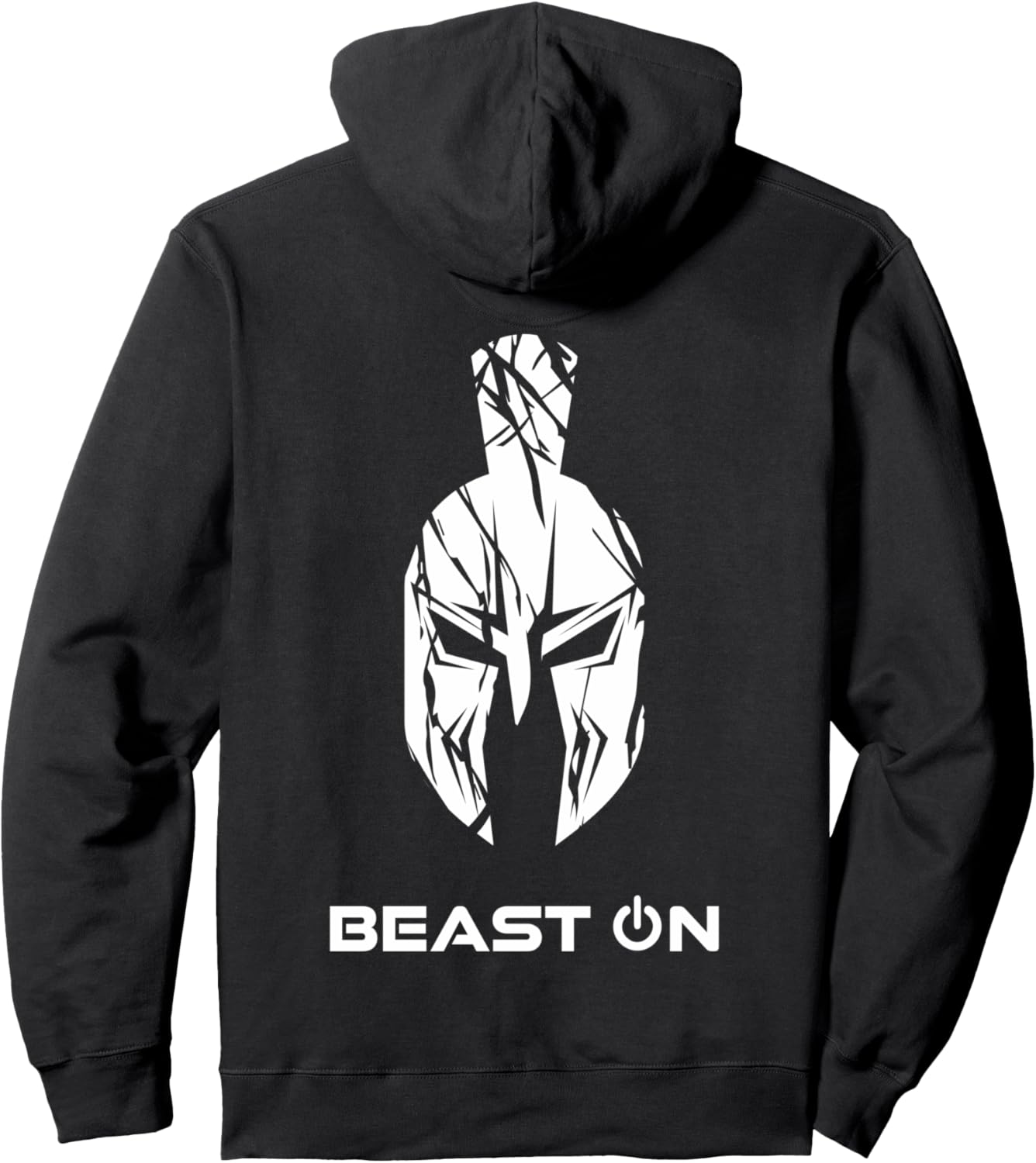 Beast ON Spartaner Helm | Rückseite Rücken Druck GYM Fitness Pullover Hoodie