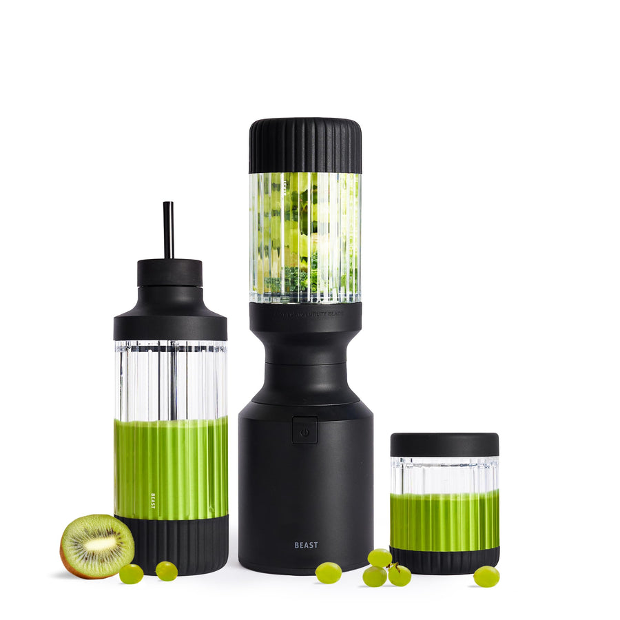 - Komplett-Set – Enthält Motorbasis, 785, 638 und 415-ml-Mixbechers, Messereinheit aus Edelstahl, 2 Aufbewahrungsdeckels, Trinkdeckel mit Trageverschluss, Strohhalmverschluss, 2 wiederverwendbare Strohhalme und Reinigungsbürsten – alles, was Sie für