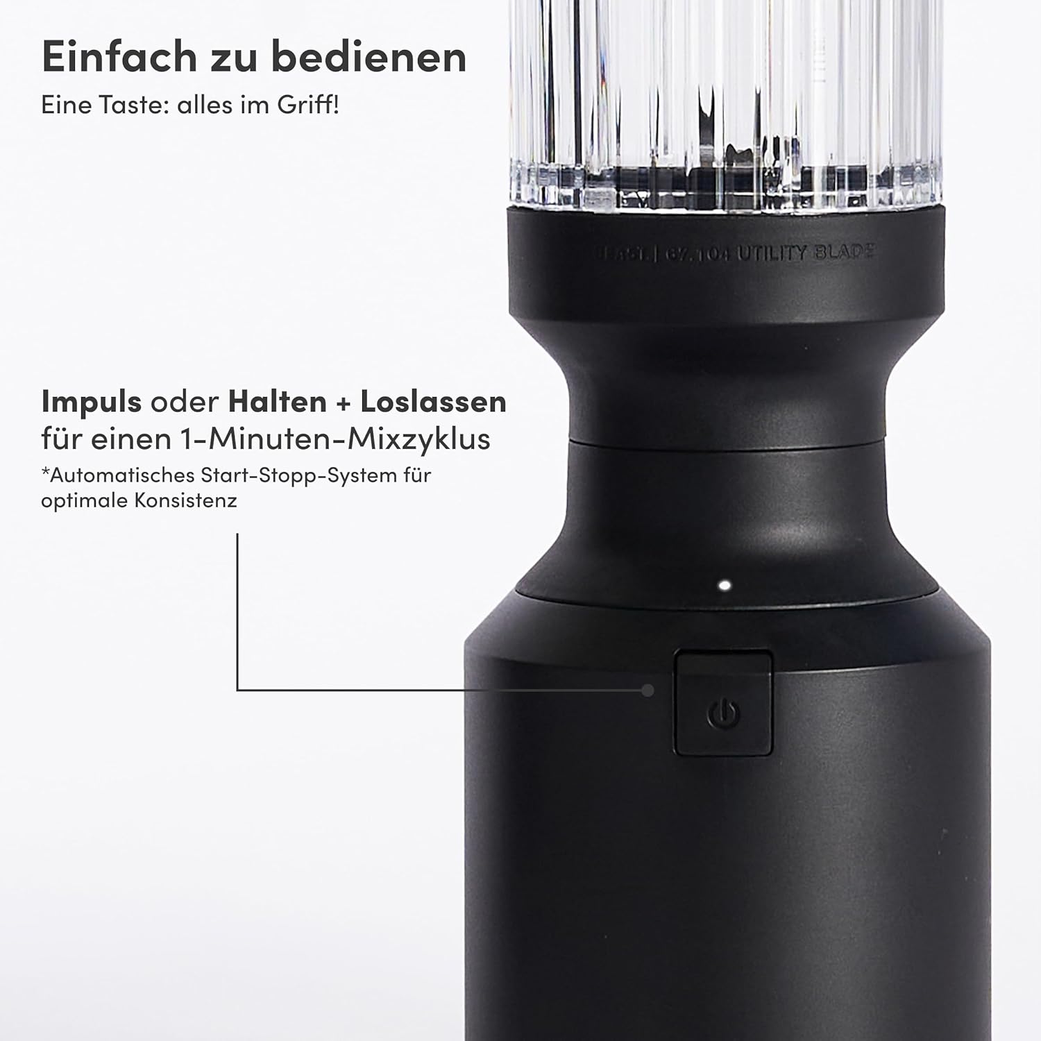 - Einfache Bedienung – Ein-Knopf-Steuerung mit automatischem Mixzyklus sorgt für gleichmässig glatte Ergebnisse ohne Aufwand. Inklusive Pulsfunktion für noch mehr Kontrolle beim Mixen.