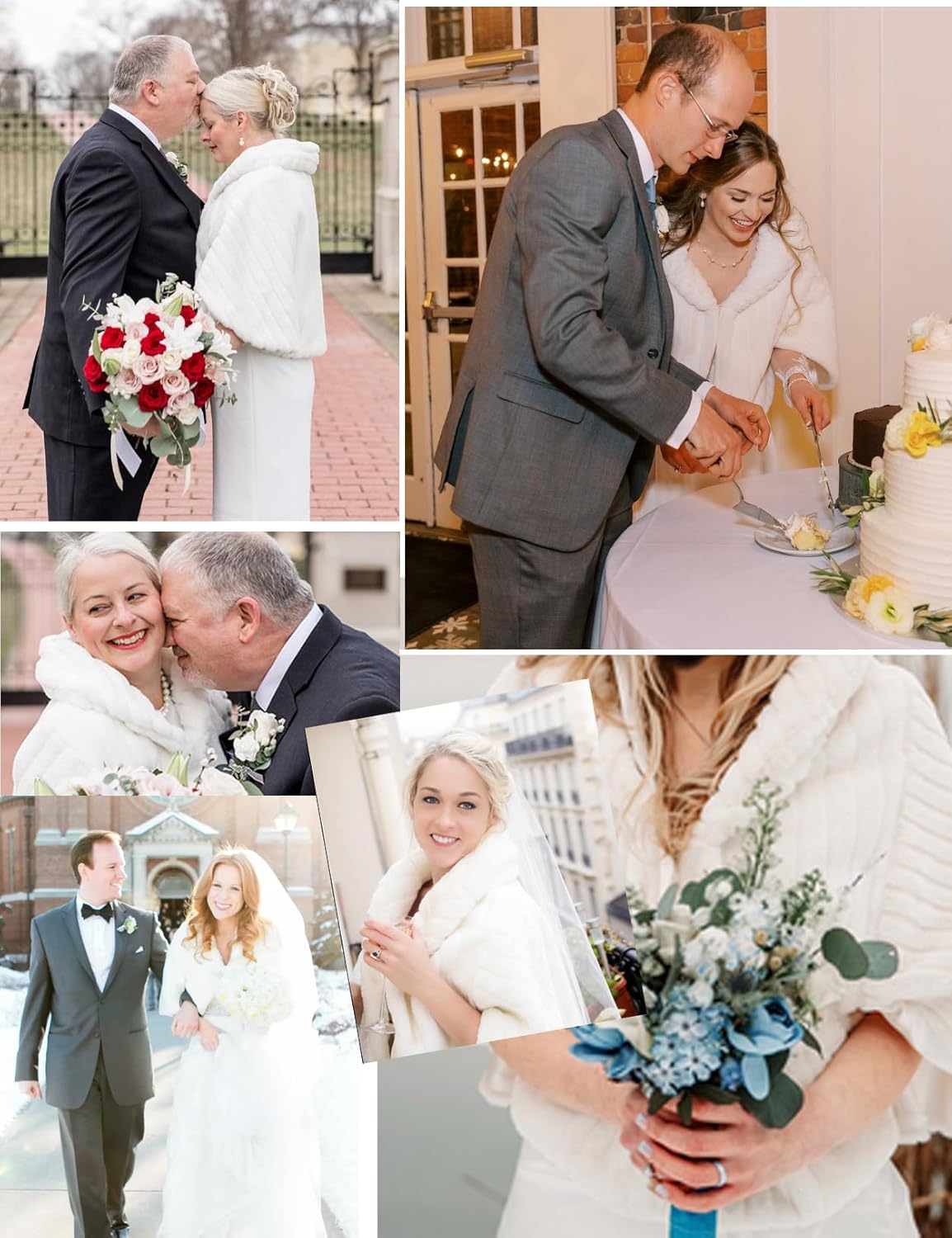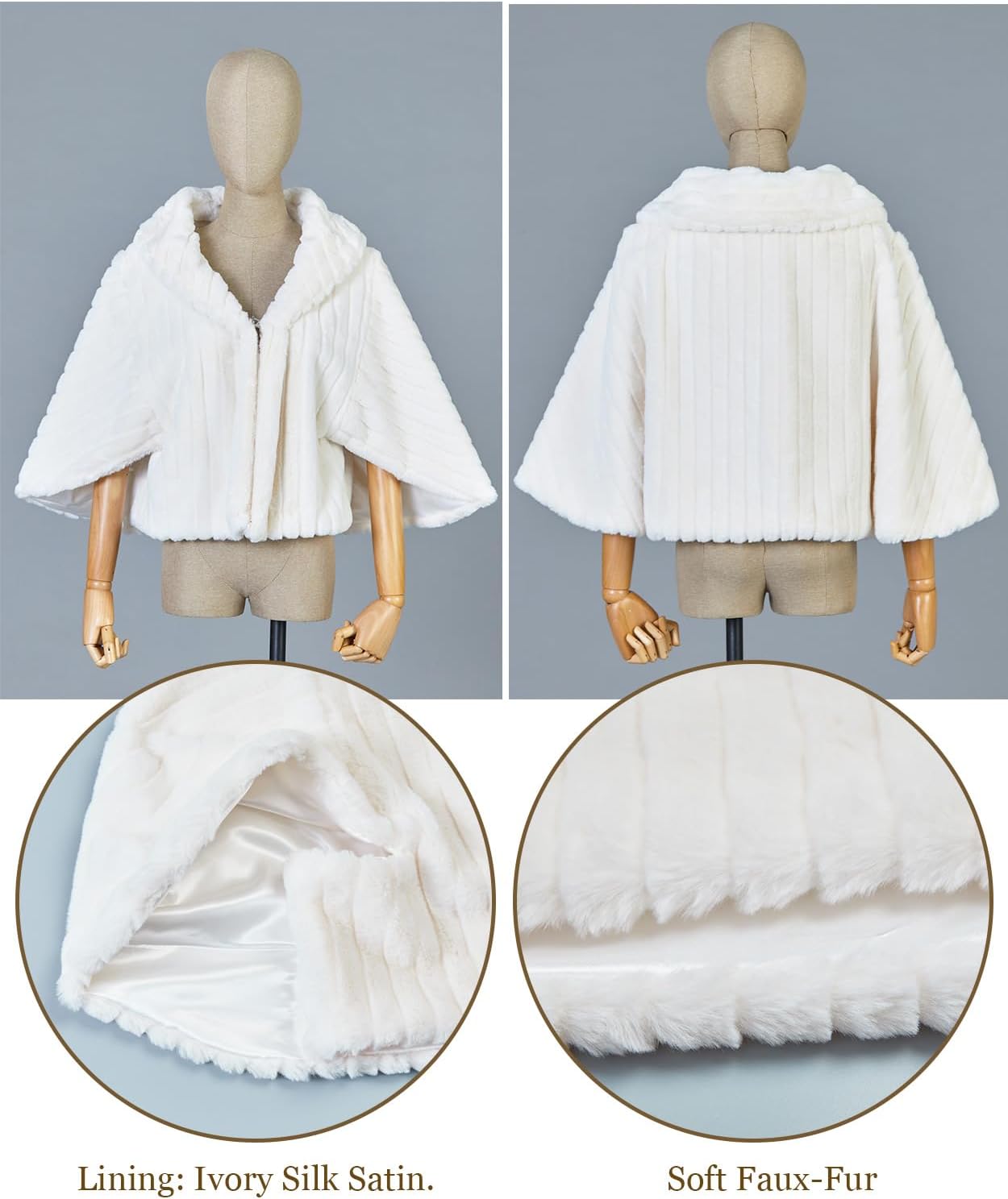 BEAUTELICATE Kunstpelz Bolero Schal Stola Pelz Cape Damen Braut Elfenbein Brautschal Brautjacke fur