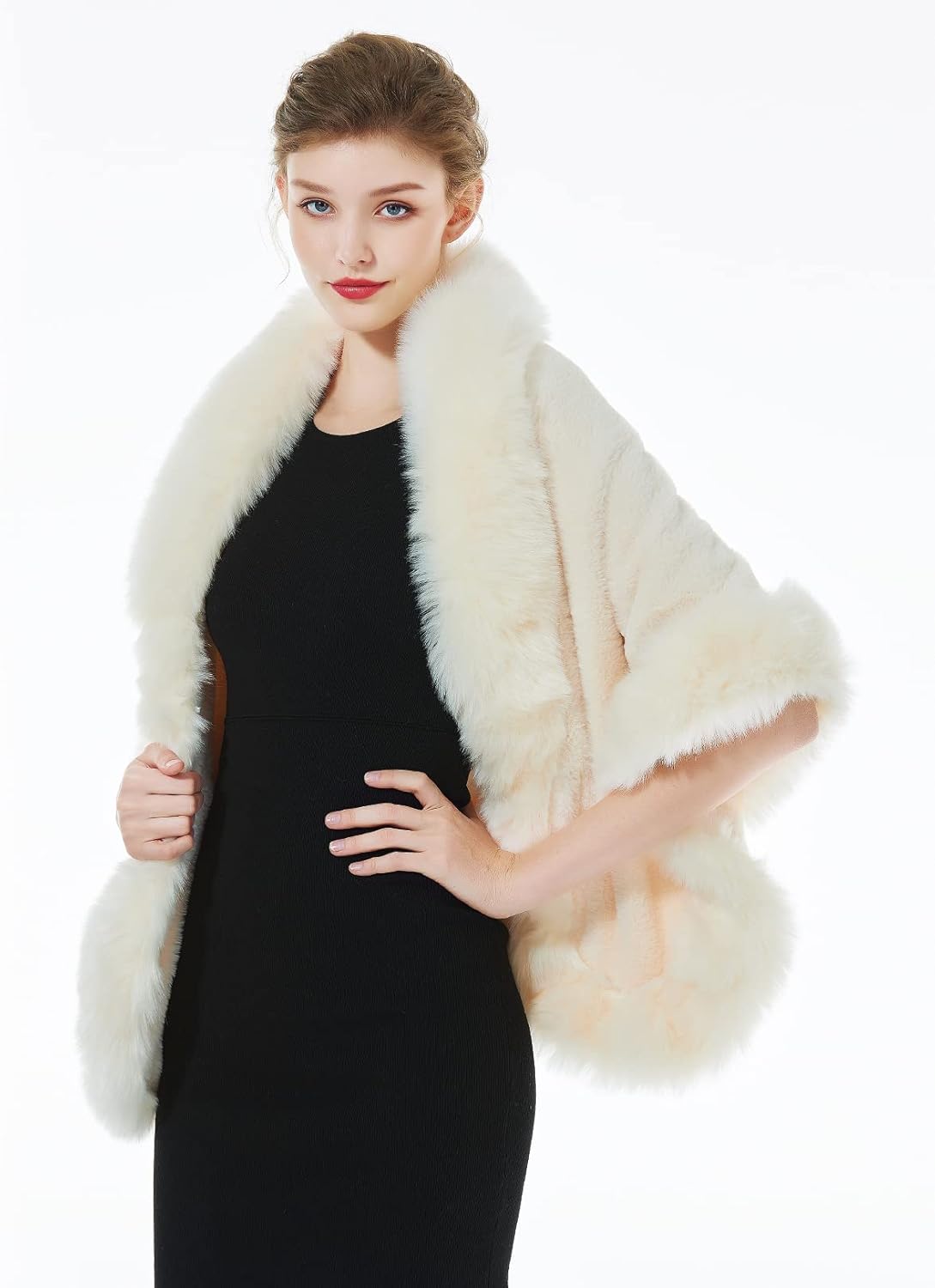 - 【Warme Stola】: Die Brautjacke besteht aus weichem, doppelseitigem Fleece wie Chenille, warmem, wickelbarem und weichem weichem Flor an den Rändern. Der Kunstfellschal ist nicht gefüttert, beeinflusst aber die Hitze nicht.