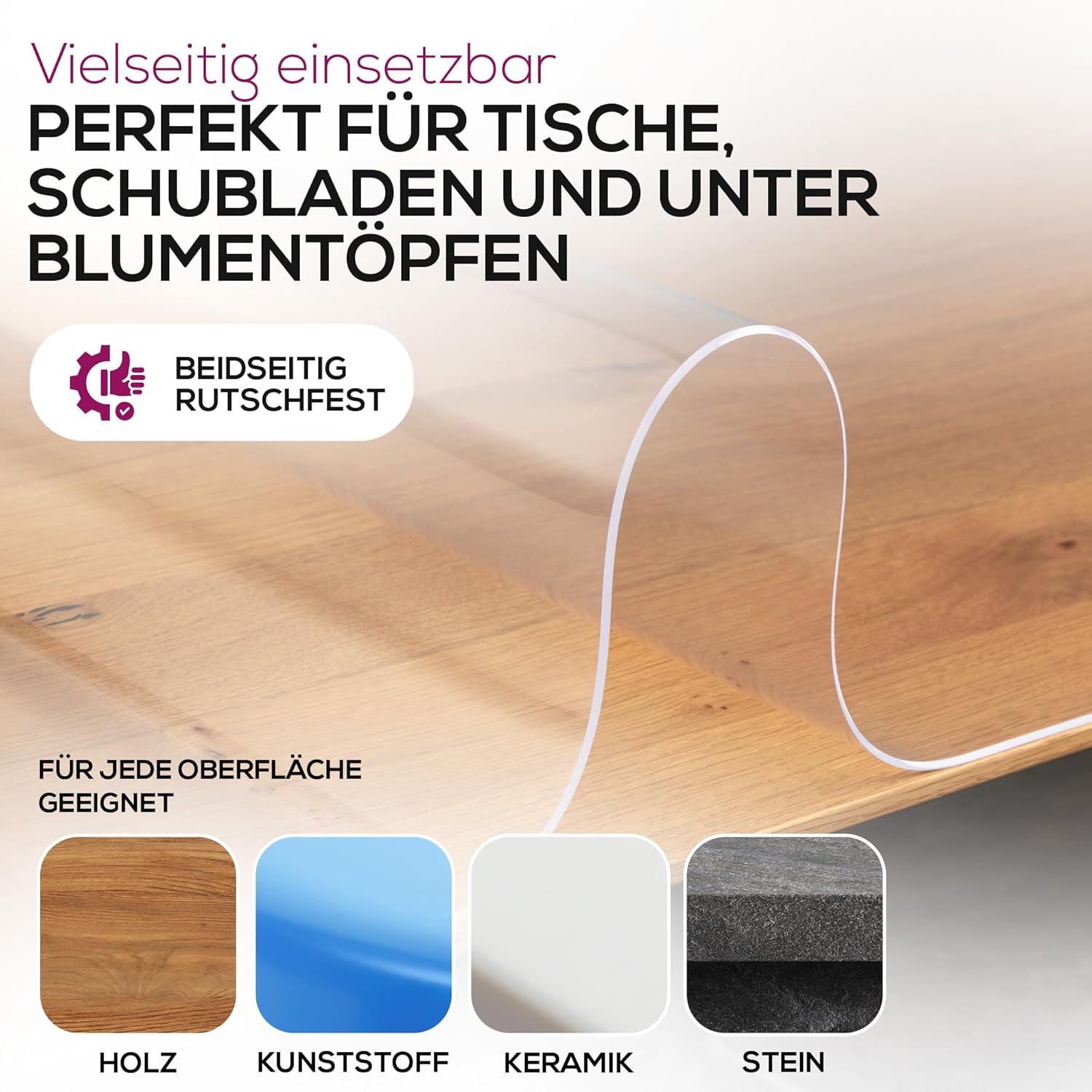 • PFLEGELEICHT - Sie können die PVC Folie transparent einfach nass abwischen, dann sieht sie wieder wie neu aus. Durch die hochwertige Optik ist sie zum Verwechseln ähnlich mit einer echten Glasplatte.