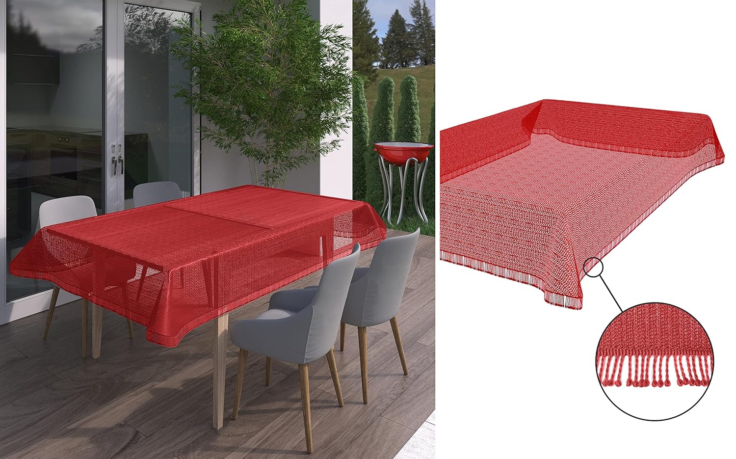 - Robuste, waschbare Weichschaum Gartentischdecke mit gleichfarbigen Fransen