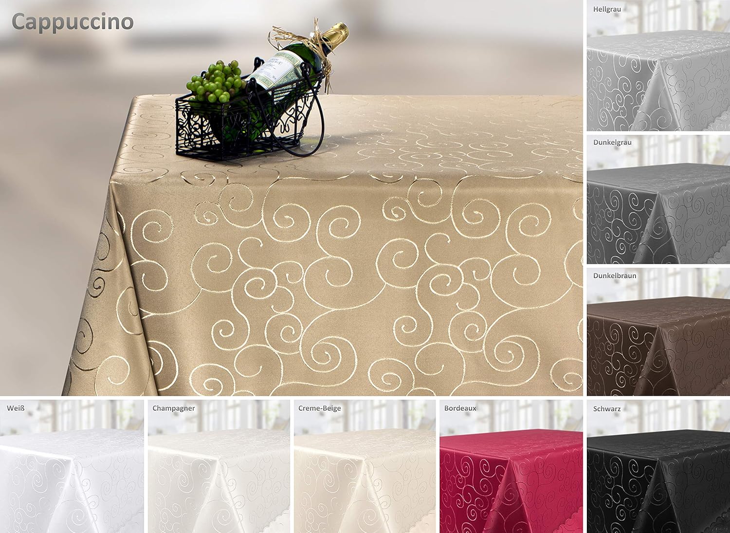 BEAUTEX Tischdecke Damast Ornamente - Bügelfreies Tischtuch - Fleckabweisende, Pflegeleichte Tischwä