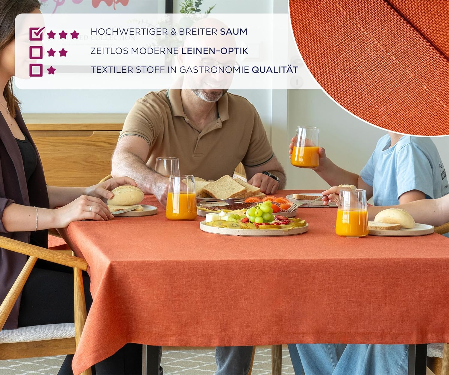 - ZEITLOSE OPTIK - Die unterschiedlich eingefärbten Fäden in der Gewebestruktur verleihen dem Tafeltuch sein hochwertiges Aussehen. Dadurch entsteht die zeitlose und auch klassische Leinen Optik.