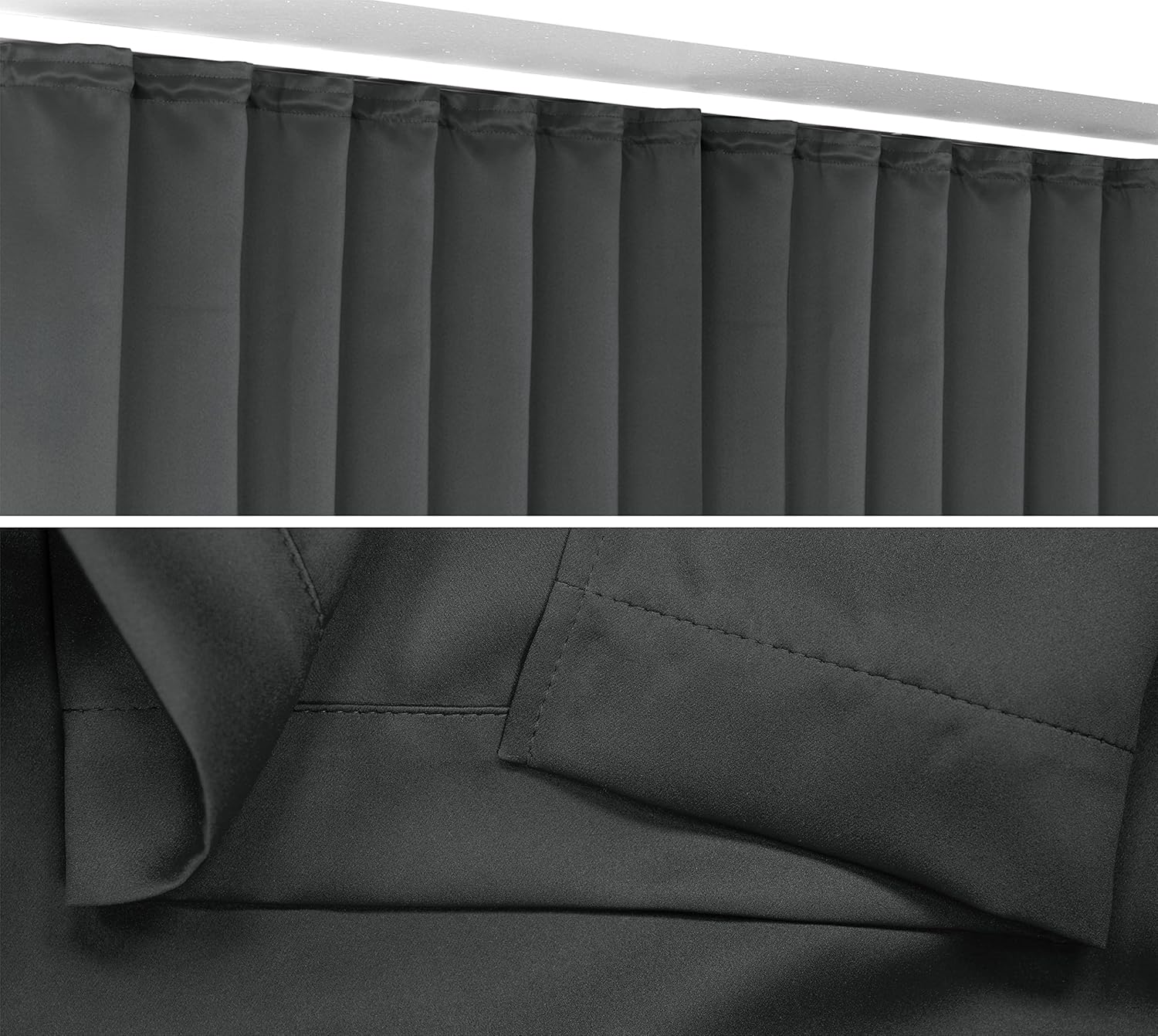 - Stark verdunkelnder Vorhang im hohen Grade blickdicht, schallschluckend und wärmeisolierend