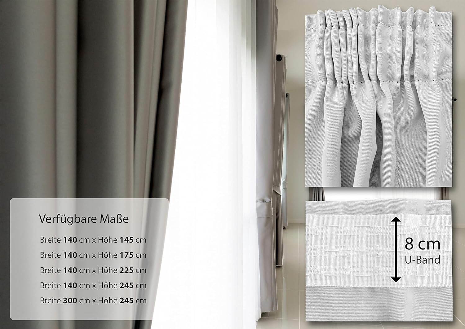 BEAUTEX Verdunkelungsgardine mit Kräuselband U-Band, Blackout Vorhang Blickdicht abdunkelnd, Grösse