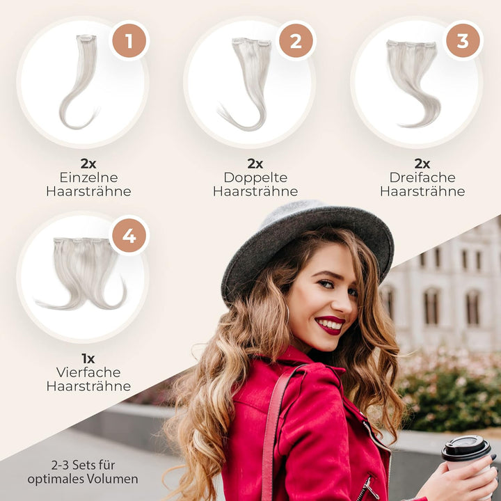 - 𝐊𝐑𝐀𝐅𝐓𝐕𝐎𝐋𝐋𝐄𝐒 & 𝐋𝐀𝐍𝐆𝐄𝐒 𝐇𝐀𝐀𝐑! Bestehend aus echtem menschlichen Haar sind deine Hair Extensions extrem lang, seidenglatt und natürlich weich. Gemeinsam mit deinem echten Haar und dem passenden