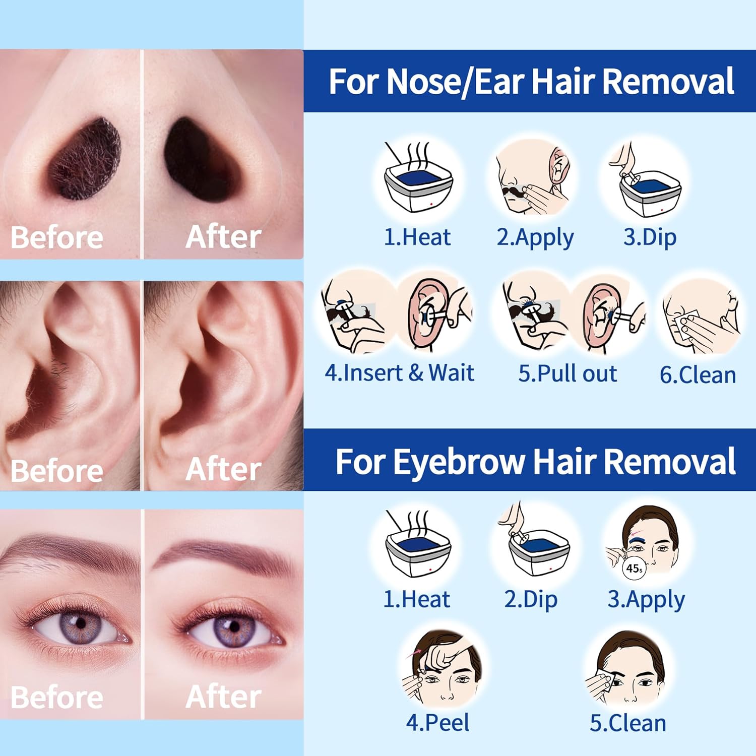 - 【Entworfen für Männer & Frauen】Ob Sie nun Gesichtshaare (Augenbrauen, Oberlippe) oder Nasen- und Ohrenhaare entfernen, dieses Wachs-Kit ist sowohl für Männer als auch für Frauen geeignet. Mit dem kompakten Mini-Wärmer, der die perfekte Grösse