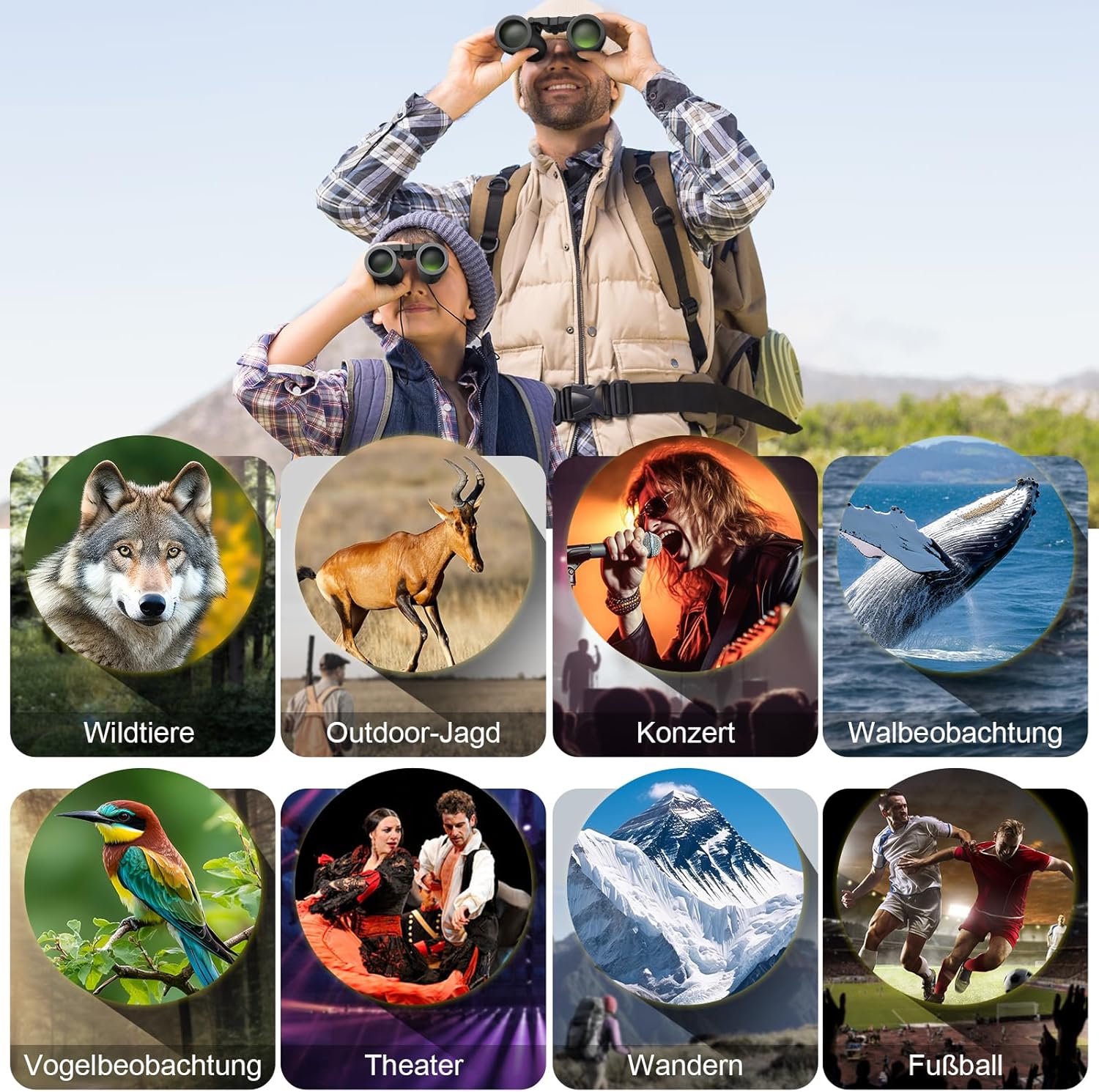 - [Mehrzweck-Fernglas] Mini-Taschenformat, wiegt nur 0,26 kg, leicht zu tragen. Es ist geeignet für Outdoor-Aktivitäten wie Vogelbeobachtung, Jagd, Reisen, Wandern, Camping, Klettern, Sternenbeobachtung, Konzerte, Sport.