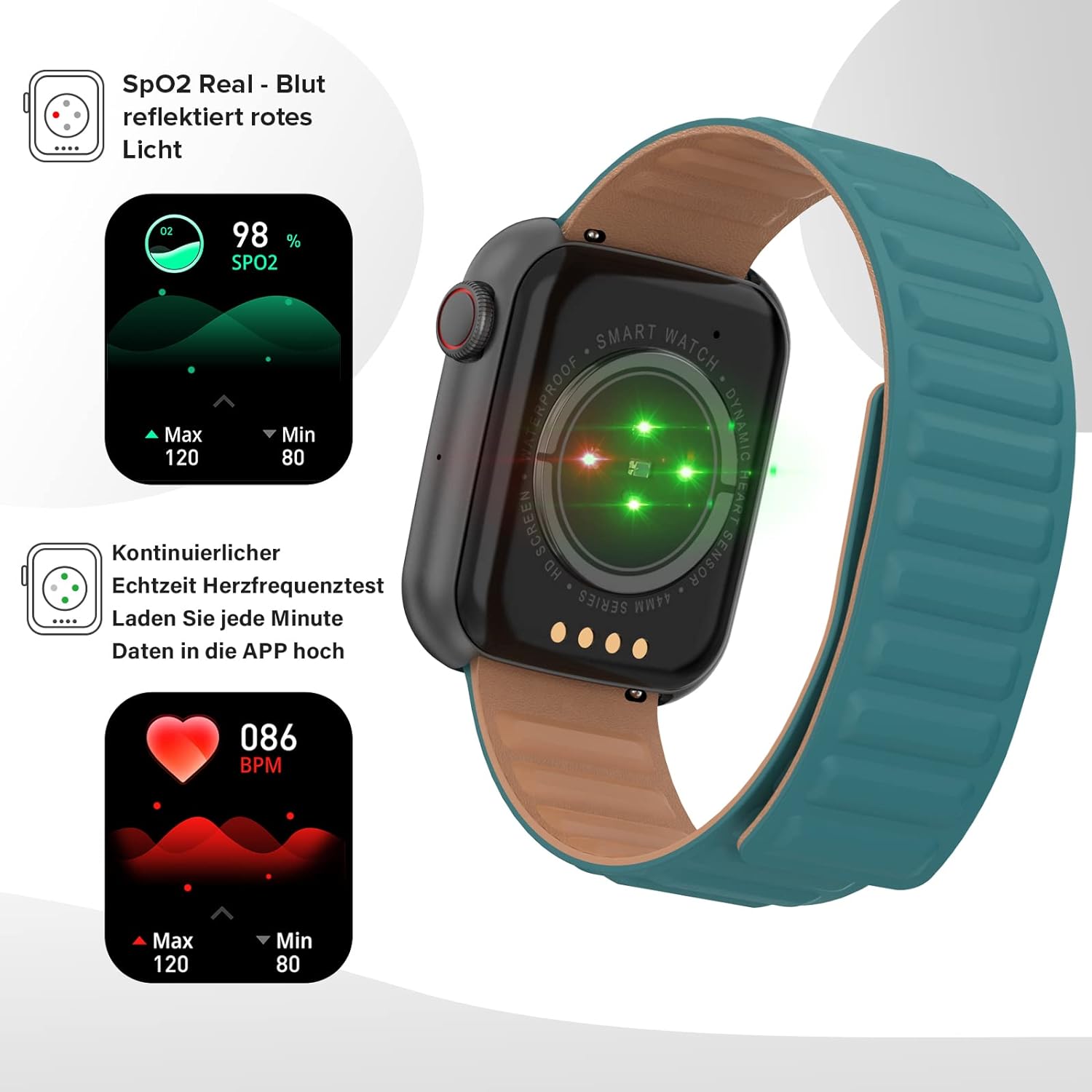 • 【Gesundheits- und Fitnessüberwachung】 Kontinuierliche 24/7 Herzfrequenzüberwachung. Durch einen speziellen Infrarotsensor kann diese Smartwatch die tatsächliche Menge an Sauerstoff in Ihrem Blut erkennen und automatisch Ihren Schlaf überwachen,