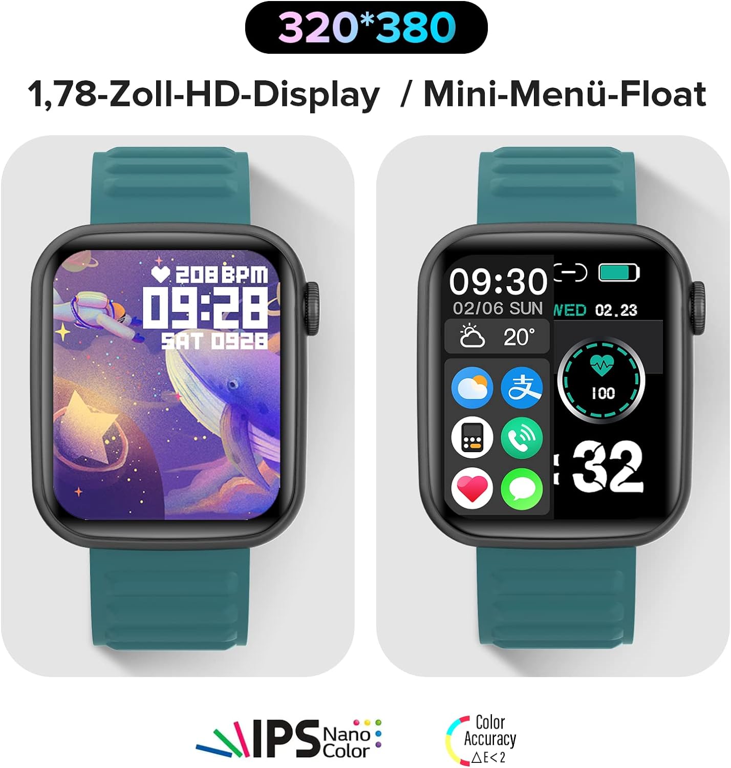 Bebinca GM1 Smartwatch 2023 mit Telefonfunktion Lautspreche, 1.75 "HD-Display 320 * 380, 128MB MP3,