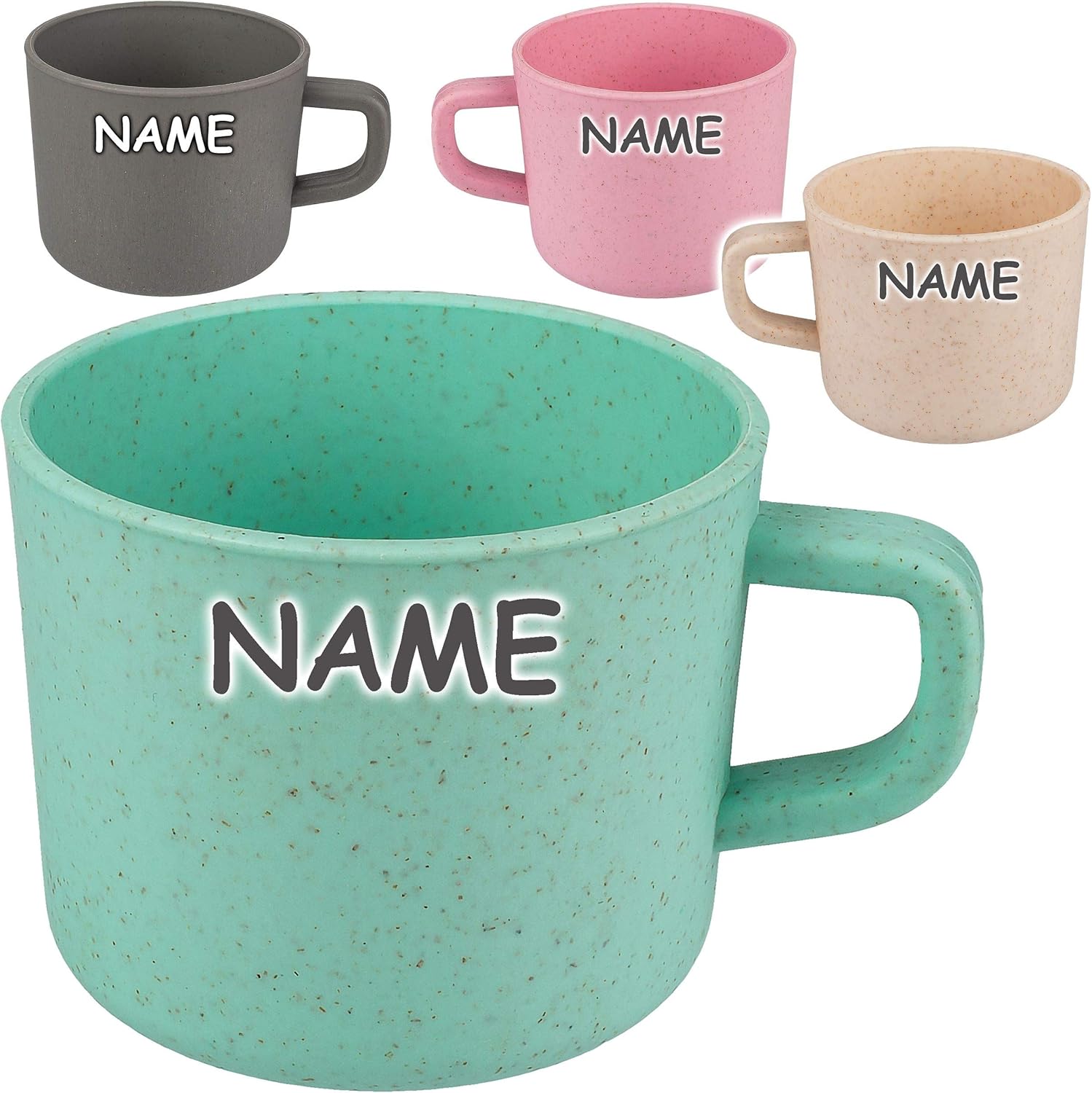 - die Tasse hat einen schönen grossen Henkel, ideal für kleine Kinderhände ______ geeignet für Babys und Kinder als Trinklernbecher, als Kaffeebecher & Teebecher für Erwachsene zu Hause, den Garten oder Unterwegs z.B. als Camping Geschirr ___ oder