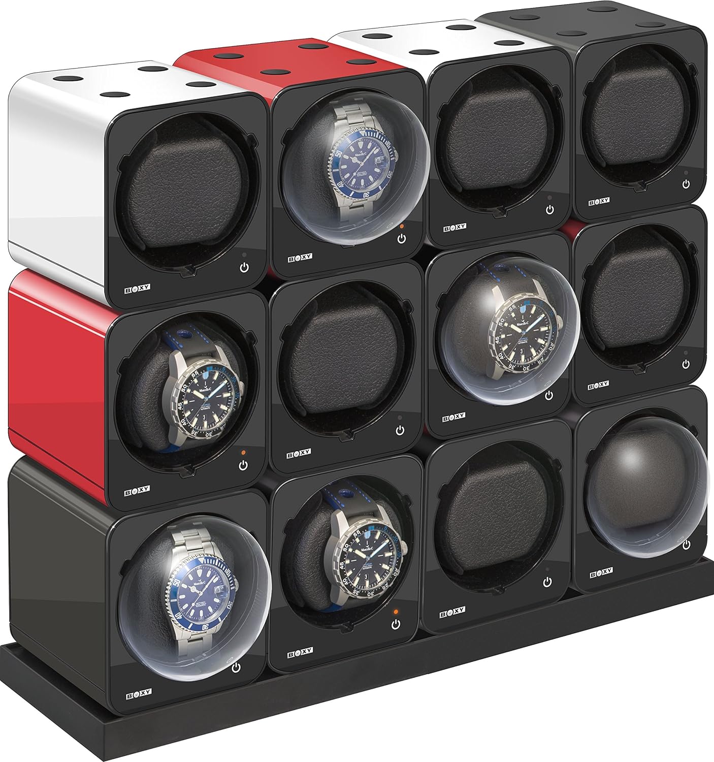 PRODUKTBESCHREIBUNGEN Der neue Boxy Fancy Brick Uhrenbeweger aus dem Haus Beco Technic ist für die Aufbewahrung einer Uhr geeignet und die konsequente Weiterentwicklung des ebenfalls verfügbaren Boxy Classic Uhrenbewegers. Unter dem extravaganten frischen Design verbirgt sich die neueste Technik: Intervallmotor mit drei Laufrichtungen: rechts, links oder alternierend, 650 bis 3600 Umdrehungen pro Tag (TPD), individuell programmierbar, Riemenantrieb und Lichtsensorsteuerung sorgen für Laufruhe und geringen mechanischen Verschleiss. Weitere Highlights sind: Touch-Sensor für einfaches Ein- und Ausschalten, drehbares Universal-Uhrenkissen, für Damenuhren genauso geeignet wie für grosse und schwere Herrenuhren, vergrösserte Anti-Staubabdeckung für Uhren mit dickem Gehäuse und Glas. Bis zu zwölf Fancy-Brick Uhrenbeweger-Module können miteinander kombiniert werden (mit Basis, nicht im Lieferumfang) und dank neuester Sharing-Technologie benötigen sie immer nur einen einzigen Netzadapter (nicht im Lieferumfang). Abmasse: 110 x 98 x 130mm.