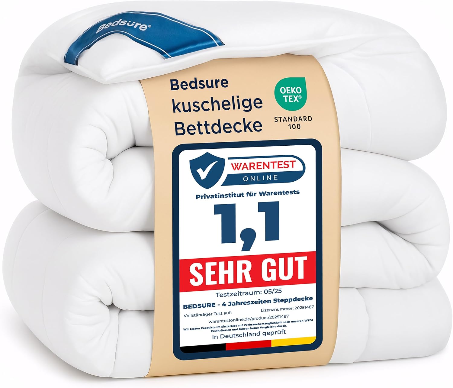 - Klassisches Steppmuster: Die Bettdecke von Bedsure ist mit einer Kastensteppung ausgestattet, die die flauschige Füllung an ihrem Platz hält und nicht verrutscht. So verteilt sich die Füllung gleichmässig und sorgt für einen erholsamen Schlaf.