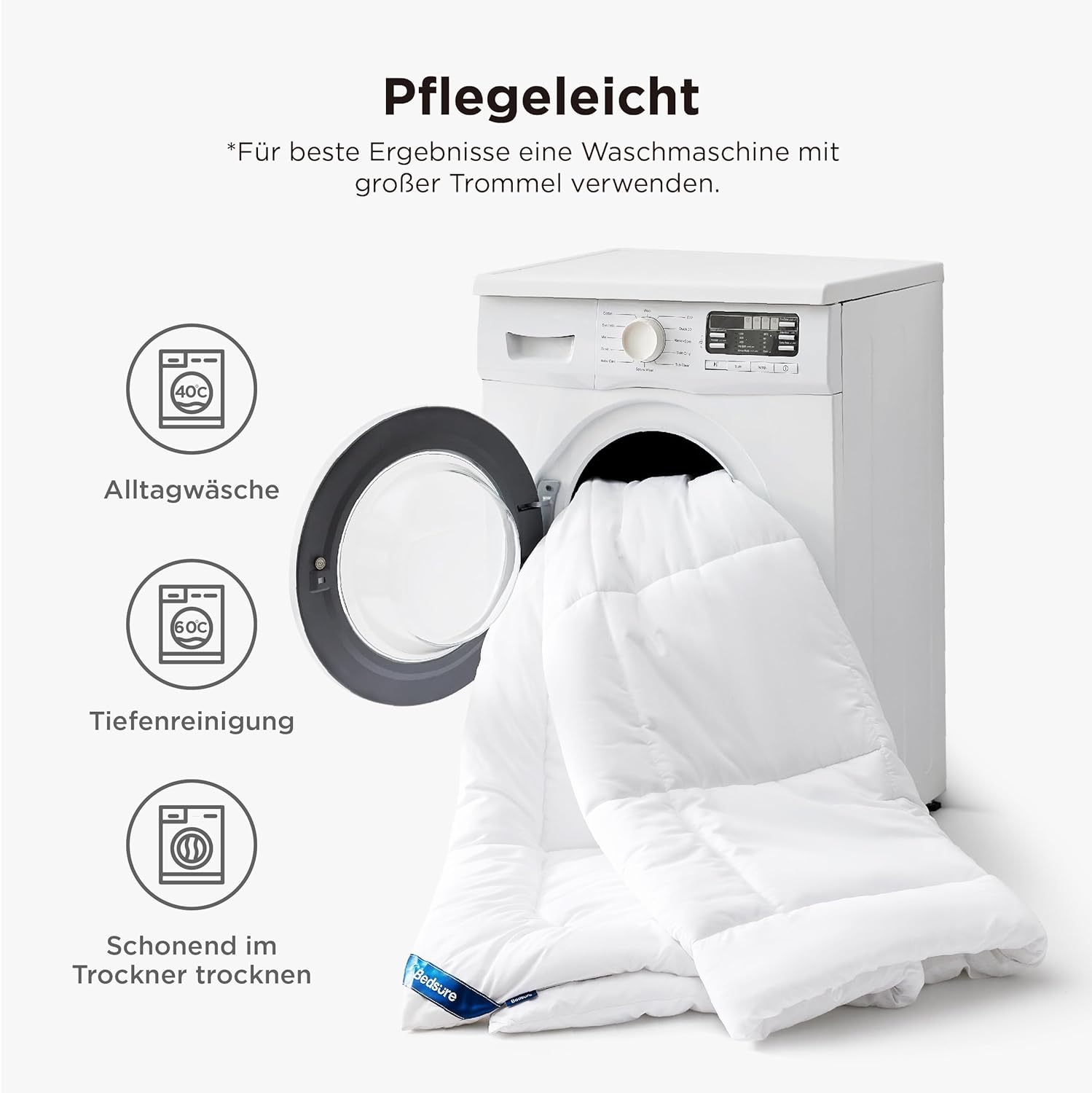 - Besonders Haltbar: Die klassische Kastensteppung verhindert, dass sich die Füllung mit der Zeit verklumpt oder sich verschiebt. Die höhere Strapazierfähigkeit gewährleistet die Langlebigkeit der Bettdecken und sorgt gleichzeitig für ein flauschiges