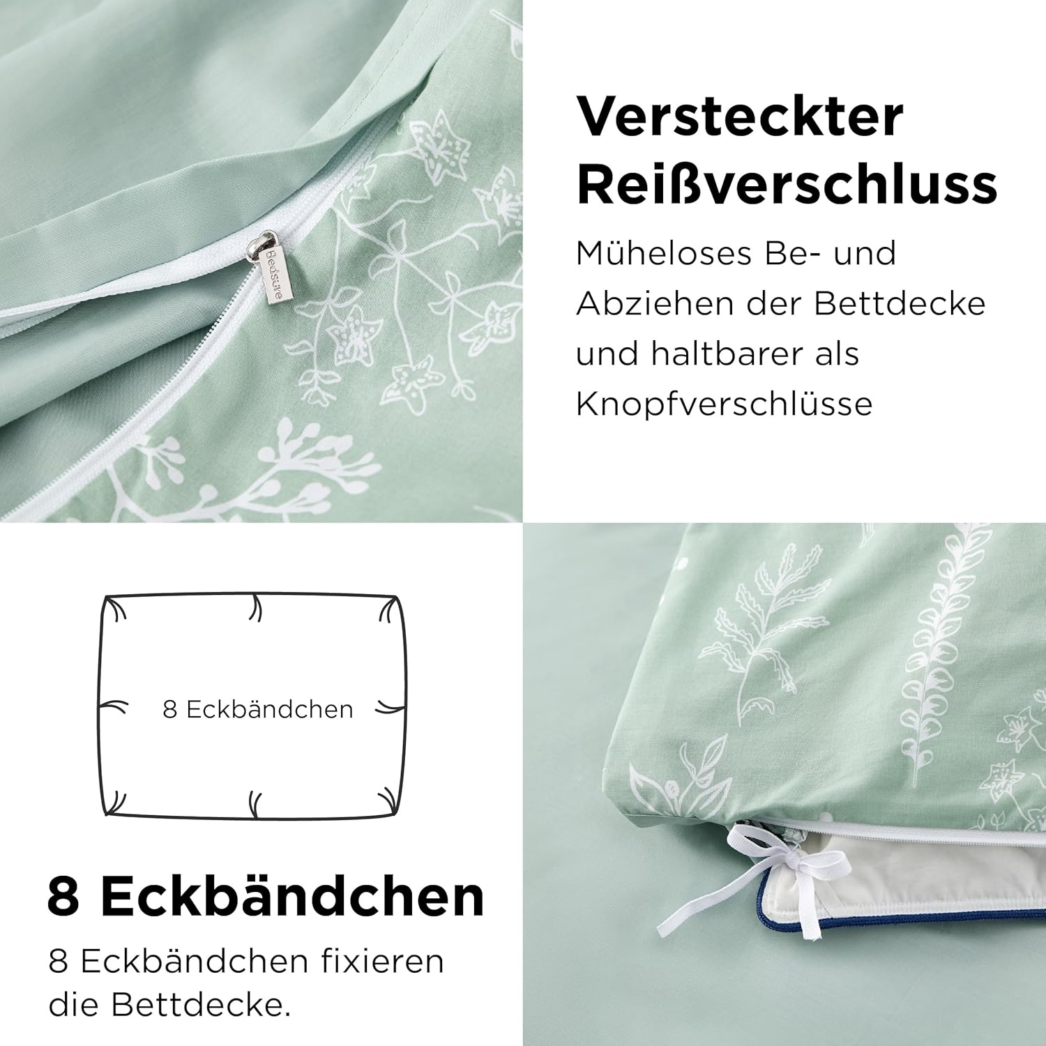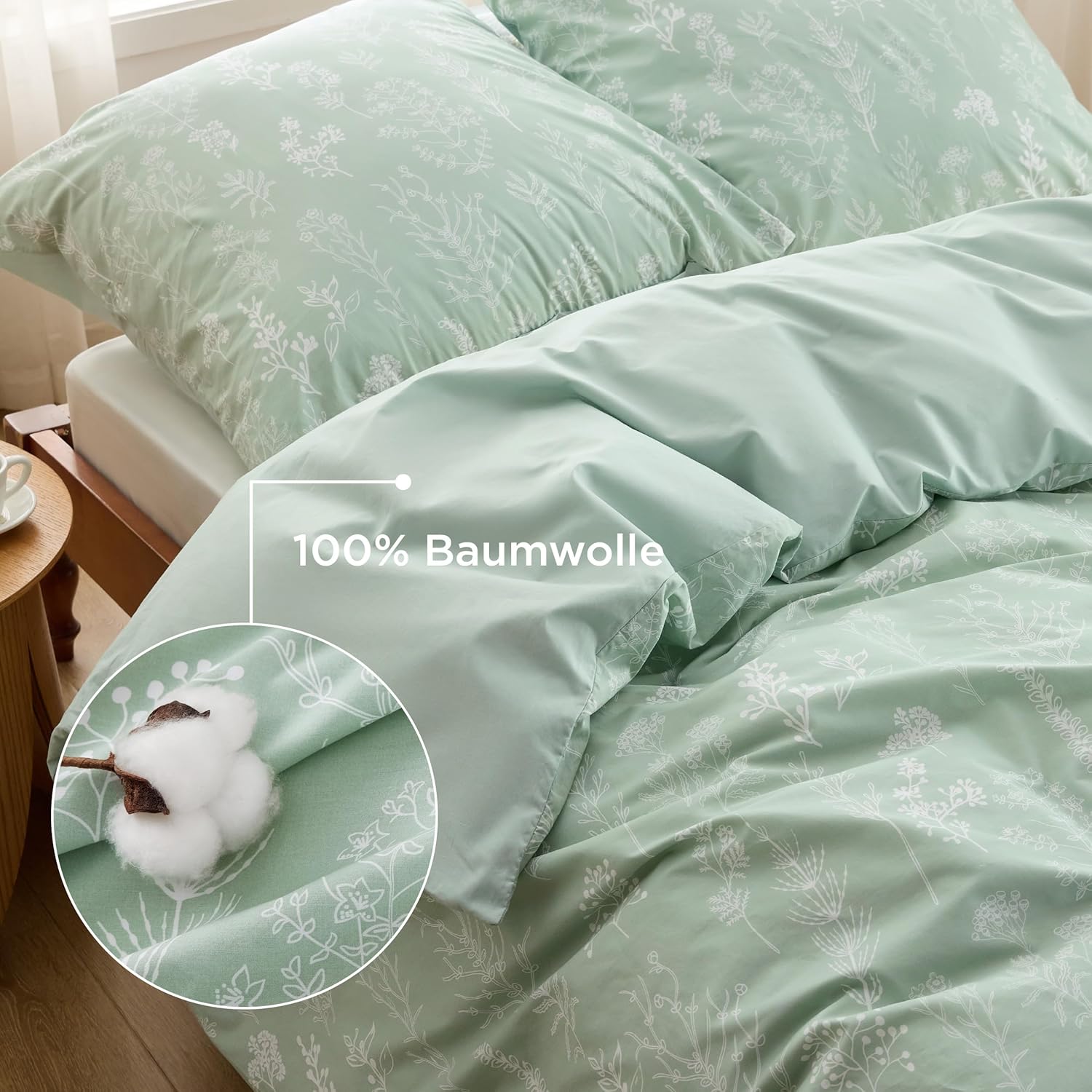 - Elegantes Design: Unsere Bettwäsche 3teilig Baumwolle Pflanzen Blumen passt mit ihrem schlichten Design in jeden Einrichtungsstil. Vorder- und Rückseite variieren in unterschiedlichen, harmonisch aufeinander abgestimmten Farben. Je nach Vorliebe