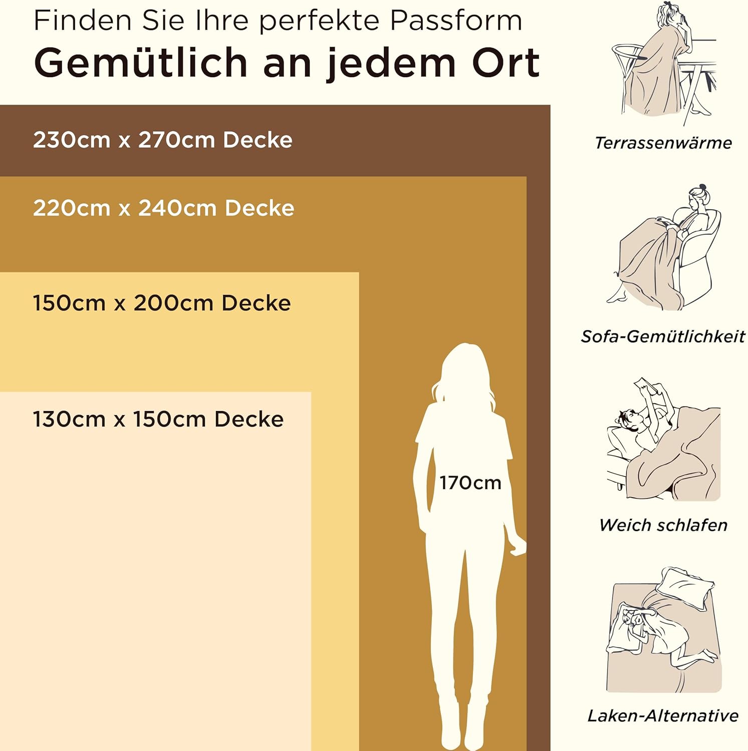 - Verschenkbar: Diese ultraweiche Decke ist in verschiedenen Grössen und Farben erhältlich und eignet sich perfekt als Geschenk und wird in einer festlichen Verpackung geliefert, die sofort verschenkt werden kann.