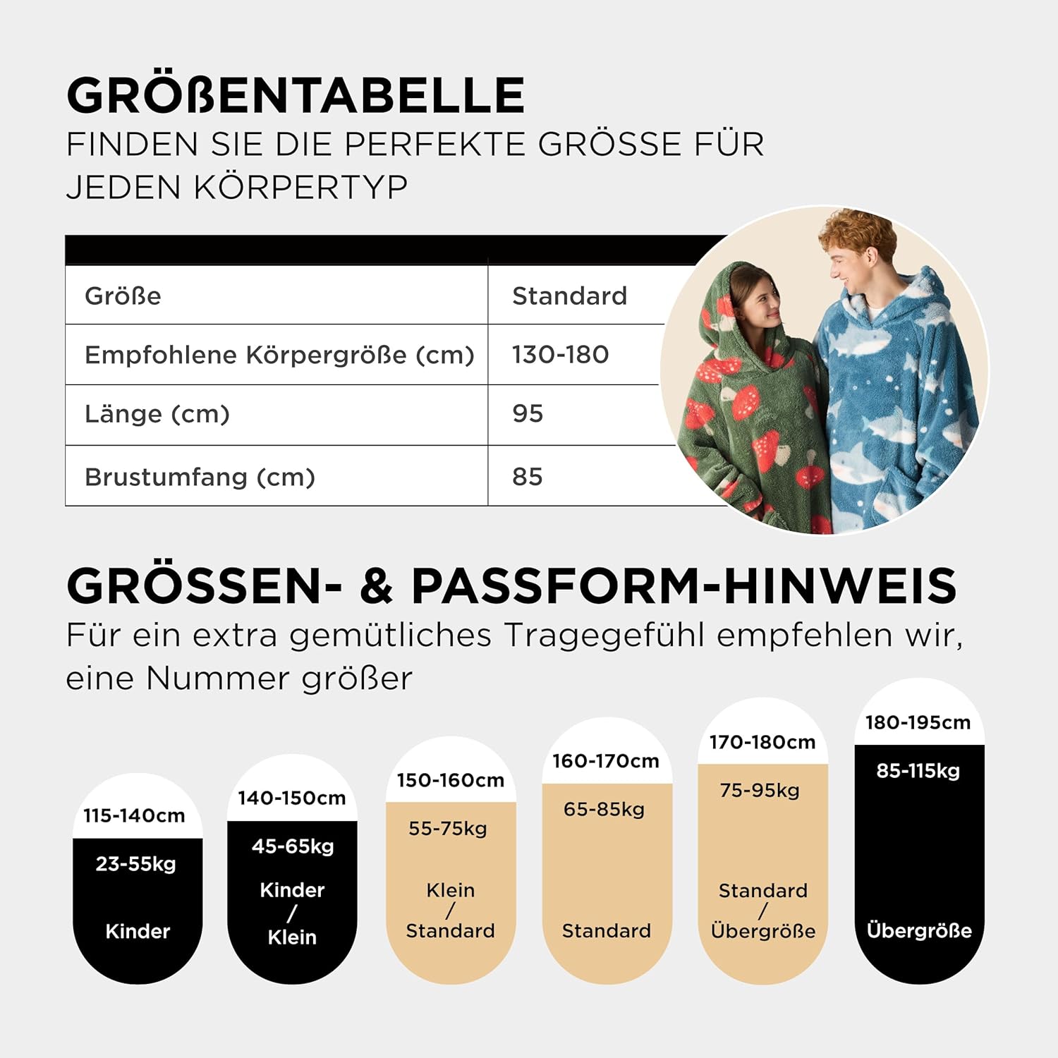 - Leichte Wärme & Komfort: Erleben Sie die perfekte Mischung aus leichter Wärme und ultimativem Komfort mit unserer Hoodie Decke für Damen und Herren. Bewegen Sie sich frei und bleiben Sie gemütlich.