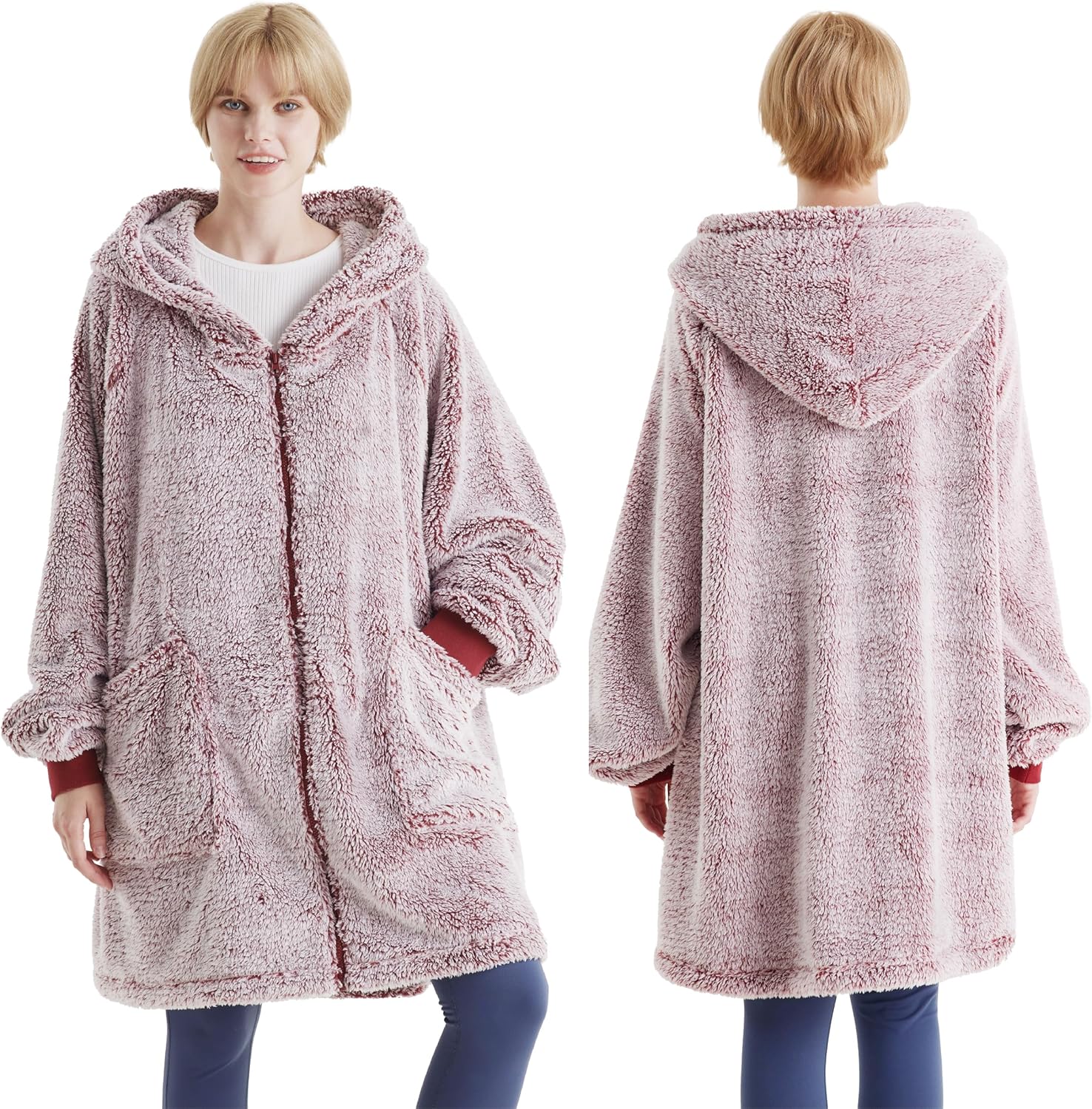BEDSURE Hoodie Decke mit Ärmeln - Sherpa Deckenpullover mit Reissverschluss und Kapuze Rot, Tragbare