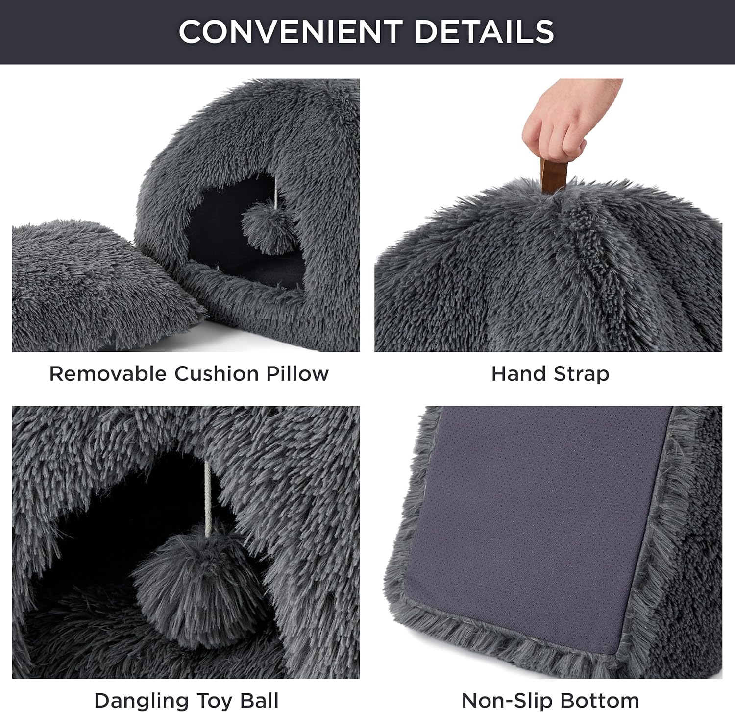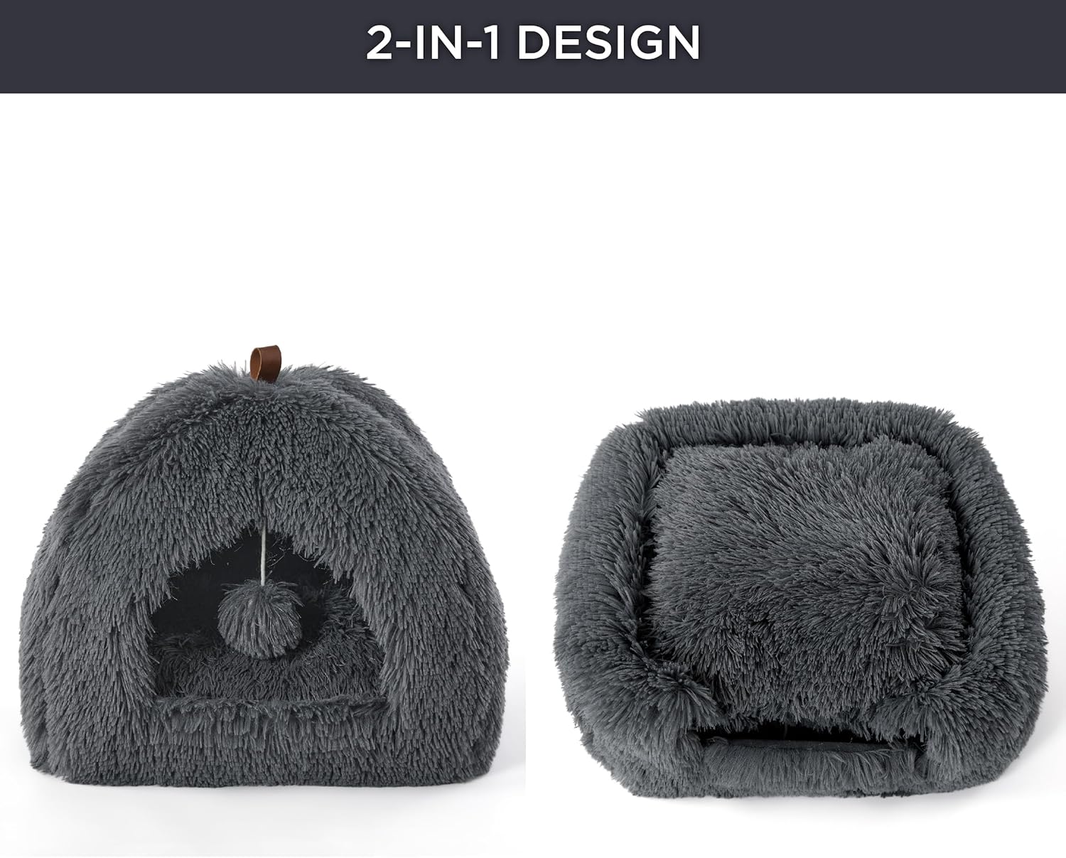 - Vielseitig: Stellen Sie diese Katzenhöhle als komfortable Festung für Ihre Katze auf oder legen Sie sie flach, um sie in ein weiches Haustierbett zu verwandeln. Ein baumelnder Spielball am Eingang bietet Ihrer Katze spielerische Unterhaltung in ihrem