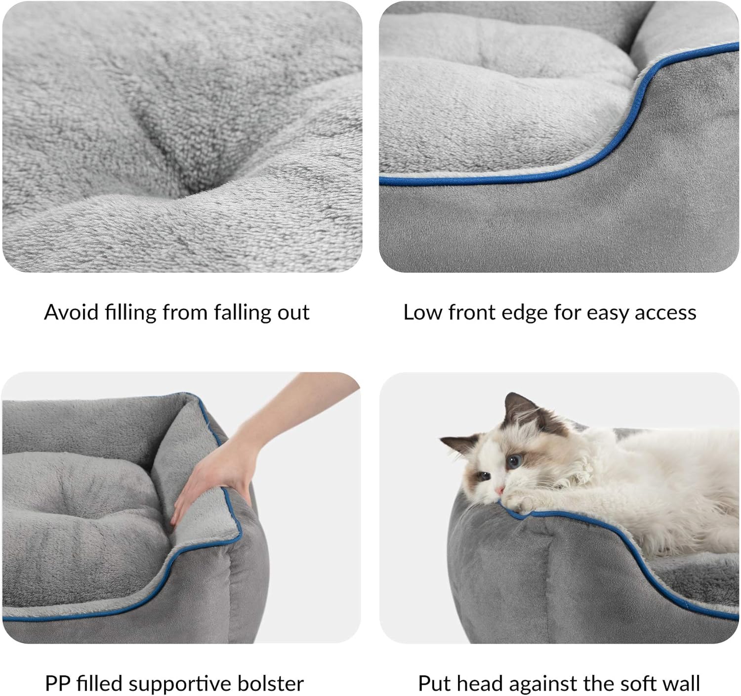 - Die stützenden, erhöhten Seiten des rechteckigen Katzenbett schaffen einen sicheren Schlafplatz zum Liegen, damit Ihr Katzen gut schlafen kann.