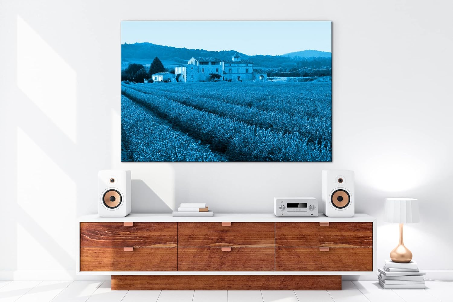 deyoli beeindruckendes Lavendelfeld in Frankreich Format 80x60 Effekt: Monocrome Blau als Leinwandbi