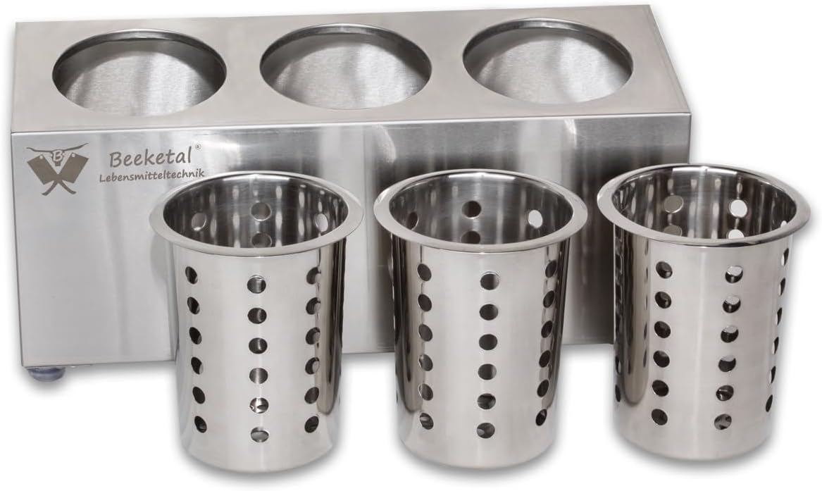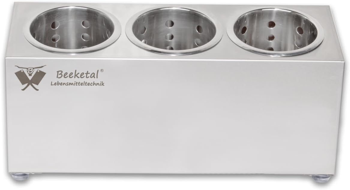 Beeketal 'BBK-3' Profi Gastro Besteckbehälter aus Edelstahl poliert inkl. 3 Köcher einreihig, entneh