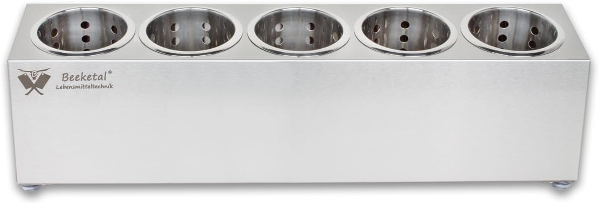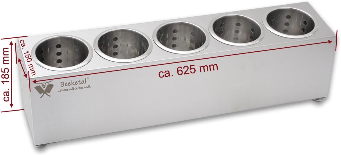 - Beeketal Modell BBK-5: einreihig 5 Köcher, Innendurchmesser Besteckköcher: Ø-Oben: ca. 95 mm, Ø-Unten: ca. 85 mm, (L/B/H) ca. 625 x 150 x 170 mm, Gewicht: 2,7 kg